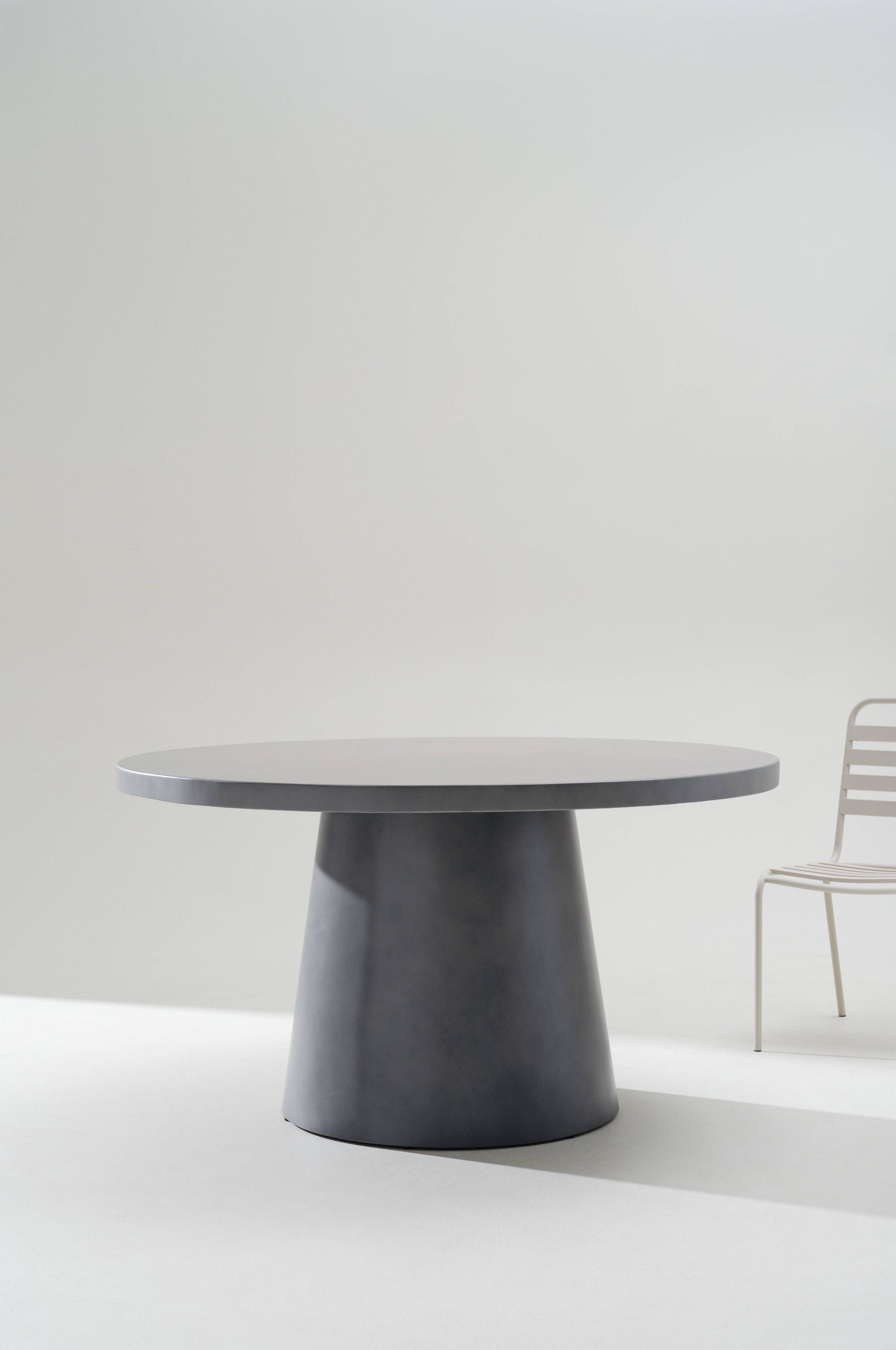 Die Tischplatte besteht aus Faserzement/Polystein, einem starken, wasserfesten und langlebigen Produkt.
