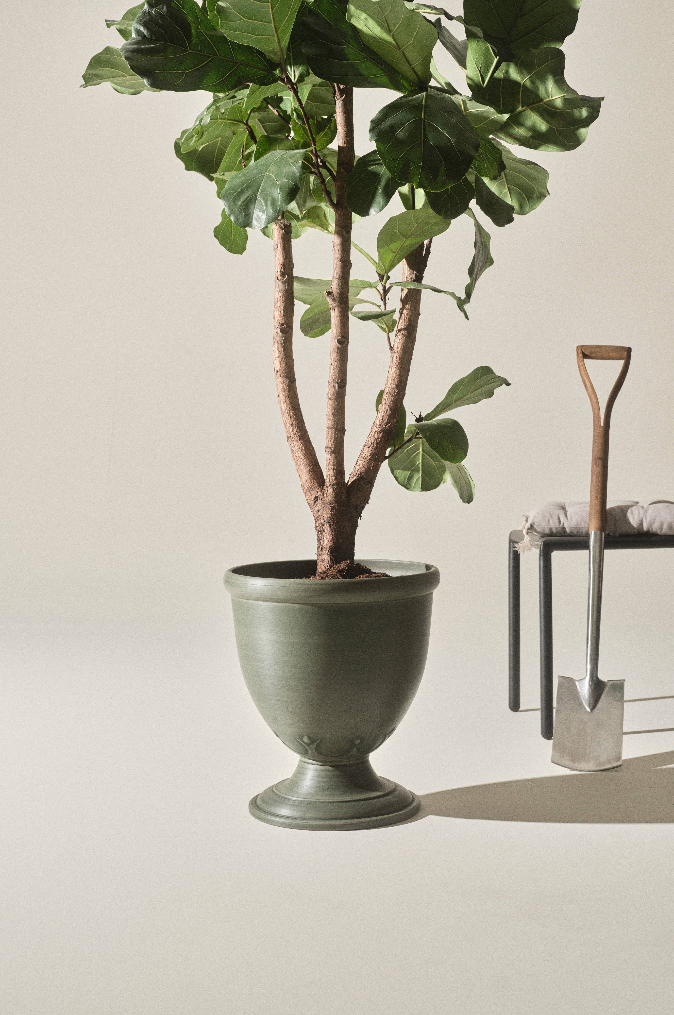 Urne zu Fuß in einem schön abgerundeten Modell mit dezenten Verzierungen in einem sehr leichten und langlebigen Material, das sowohl drinnen als auch draußen funktioniert. Die Urne ist wetterfest und frostbeständig, sie verblasst nicht im Sonnenlicht und ist außerdem recycelbar. Mehrere identische Töpfe in einer Reihe ergeben einen großartigen Eindruck.