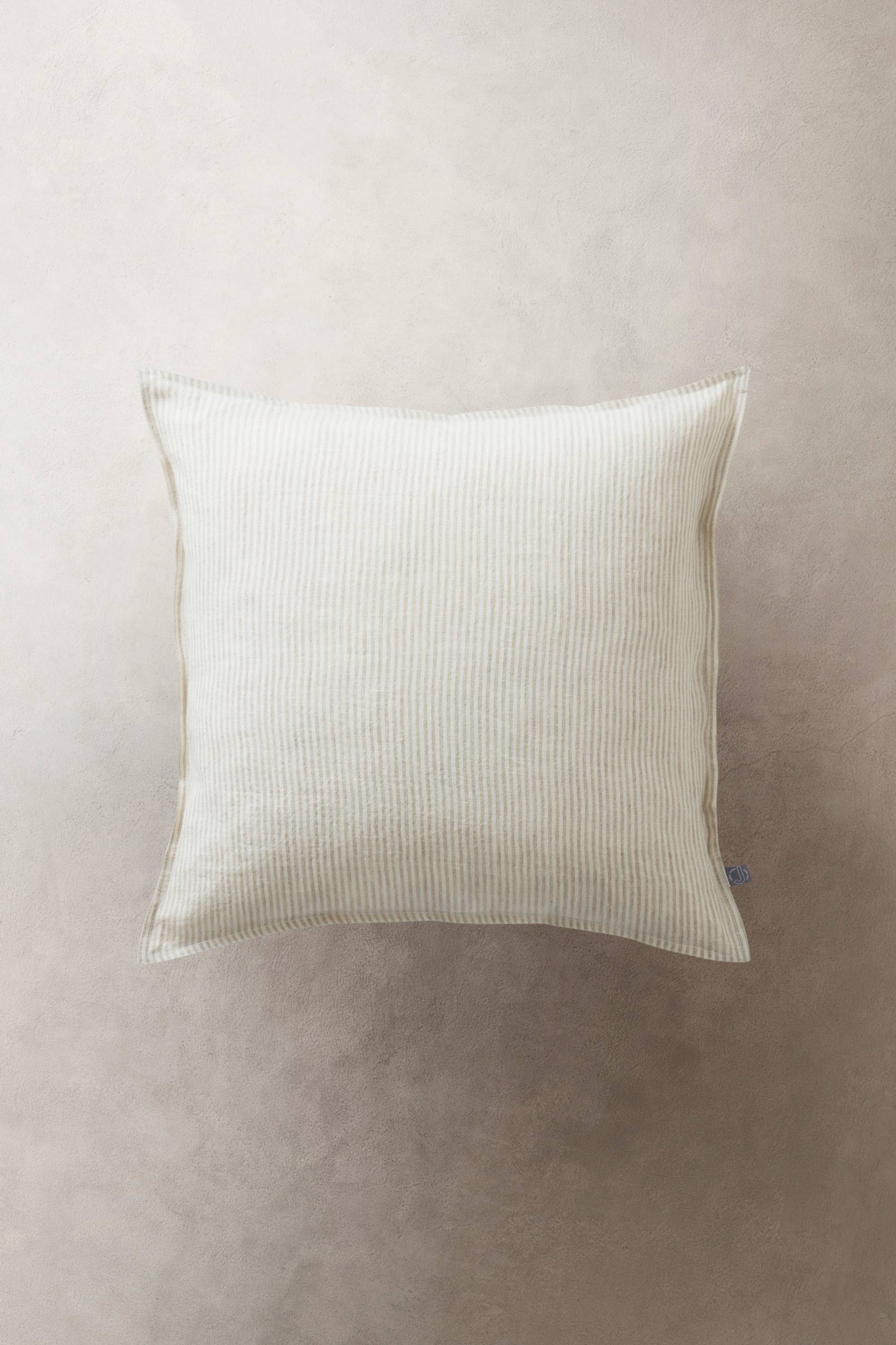 Kissenhülle aus Leinen mit Webstreifen. Die garngefärbten Streifen verströmen in Kombination mit dem Leinen eine kernige, natürliche Optik. Die Kissenhülle schmückt sich rundum mit einer Doppelnaht und hat einen verdeckten Reißverschluss. Bei der pflegeleichten Qualität bleibt es dir überlassen, ob du einen glatten, gebügelten Look vorziehst oder es lieber lässig knittrig magst.