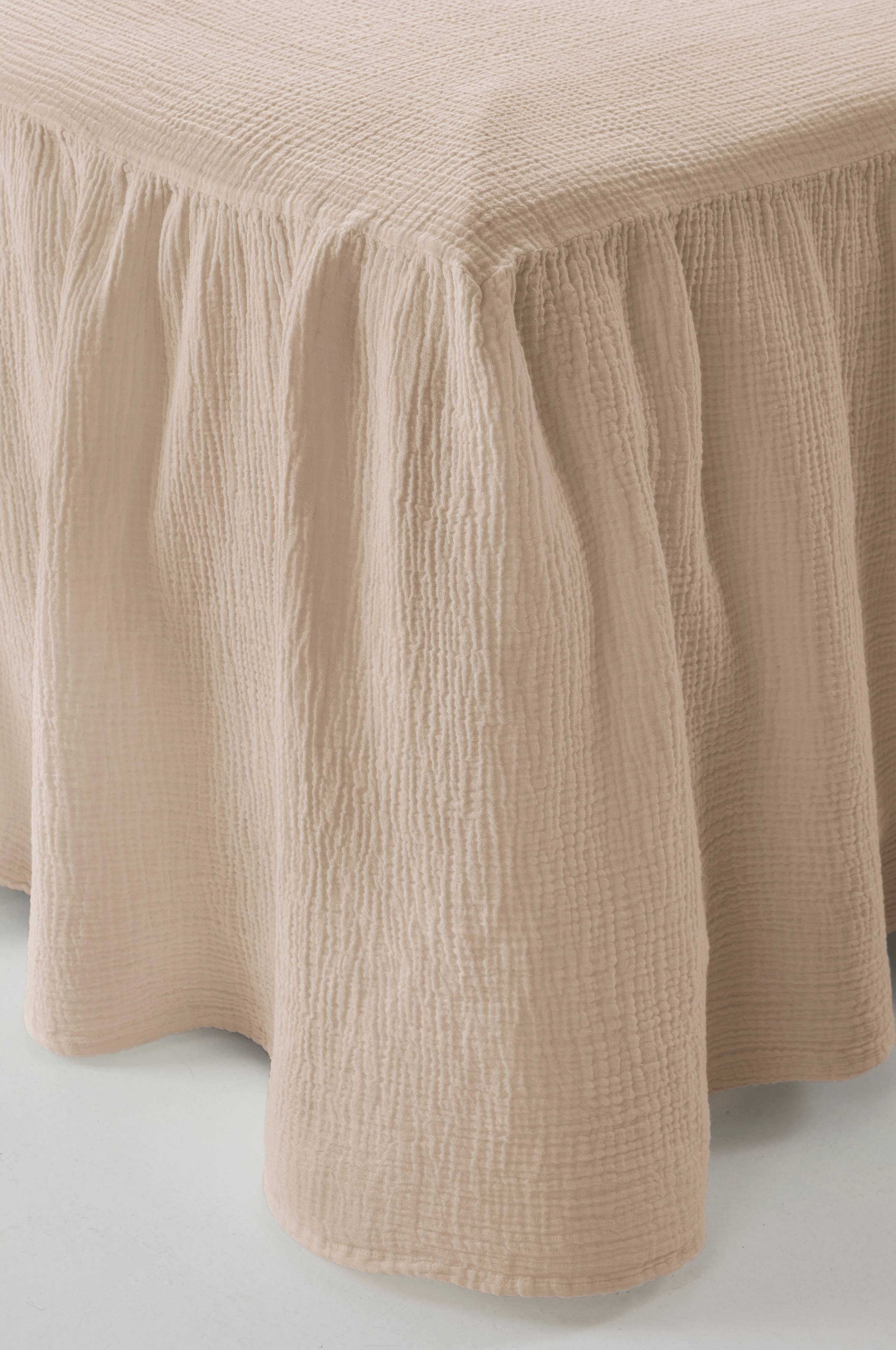 Der Bettvorhang AMILIA bringt Eleganz in dein Schlafzimmer und bietet ein gepflegtes und maßgeschneidertes Aussehen. Der Stoff lässt sich wunderbar drapieren und sorgt für einen glänzenden Look, der Bettgestelle und Stauraum unter dem Bett verdeckt. Dieser Bettvolant verleiht jedem Schlafbereich einen Hauch von klassischem Charme und sorgt dafür, dass dein Zimmer aufgeräumt und stilvoll aussieht.