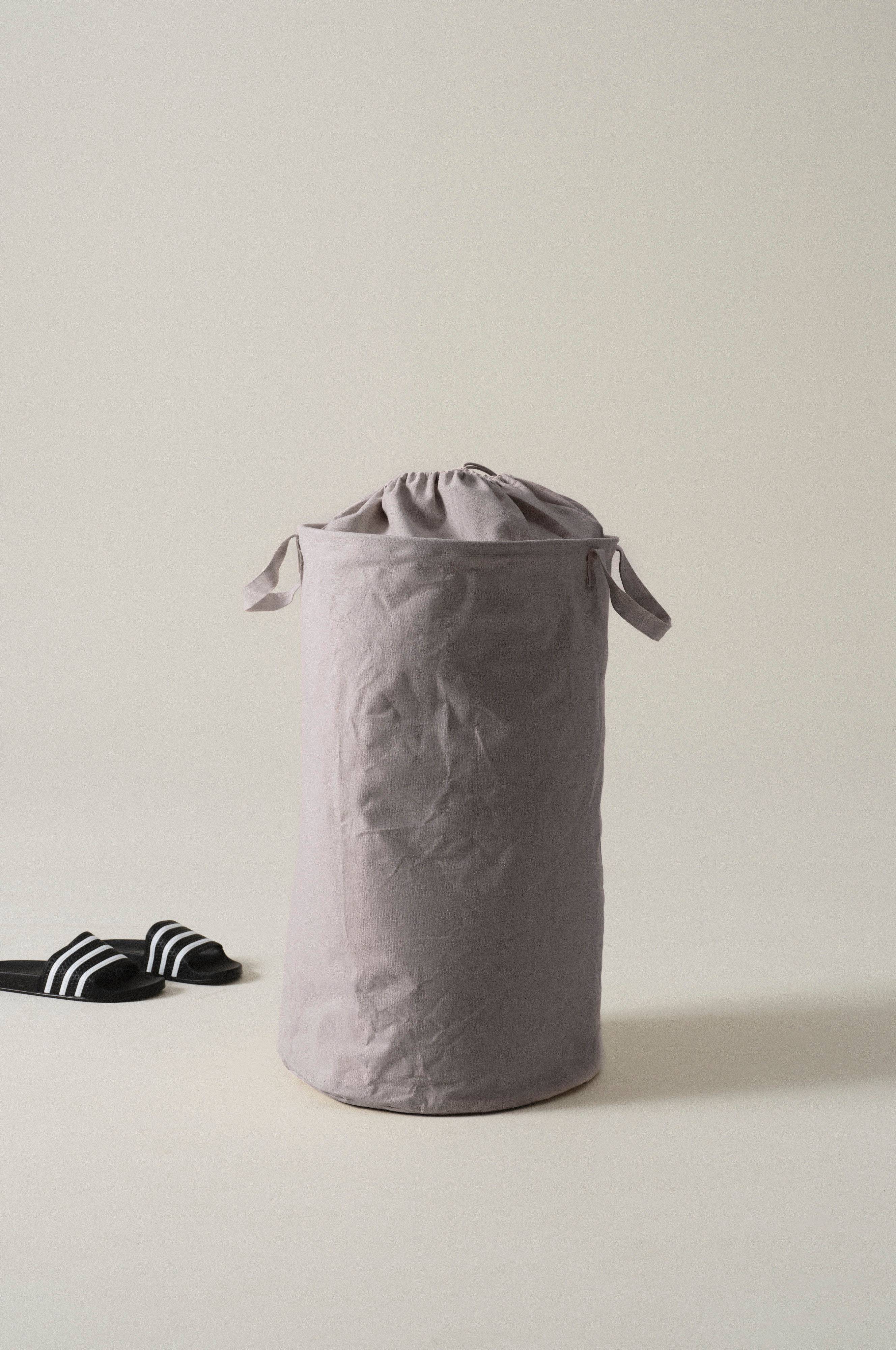 Gewebter, einfarbiger Wäschekorb aus Baumwolle und Polypropylen. Der Wäschekorb hat Griffe an beiden Seiten und einen Kordelzug zum Verschließen. Bewahre deine Wäsche in einem ordentlichen und stilvollen Wäschekorb auf.