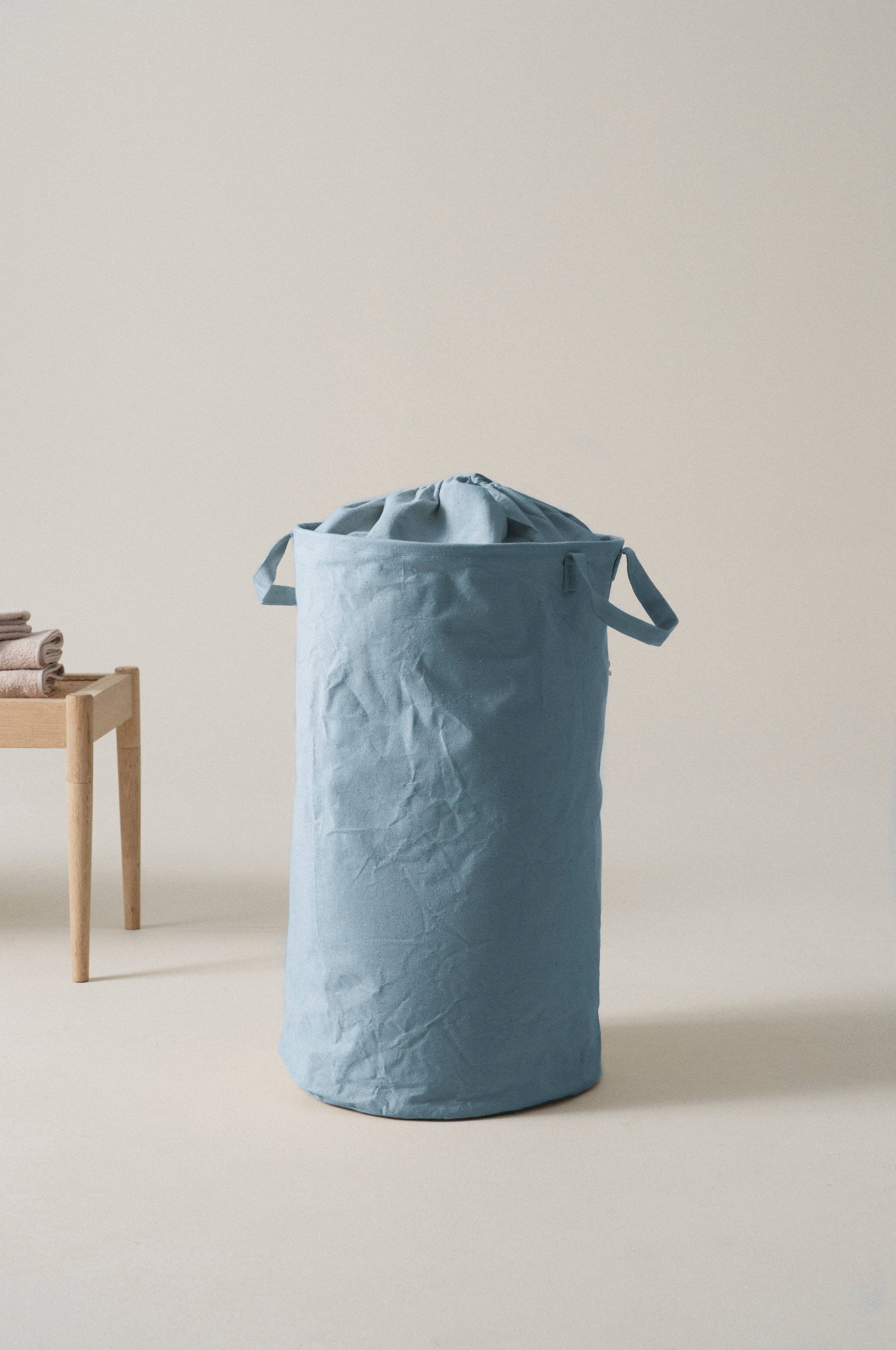 Gewebter, einfarbiger Wäschekorb aus Baumwolle und Polypropylen. Der Wäschekorb hat Griffe an beiden Seiten und einen Kordelzug zum Verschließen. Bewahre deine Wäsche in einem ordentlichen und stilvollen Wäschekorb auf.
