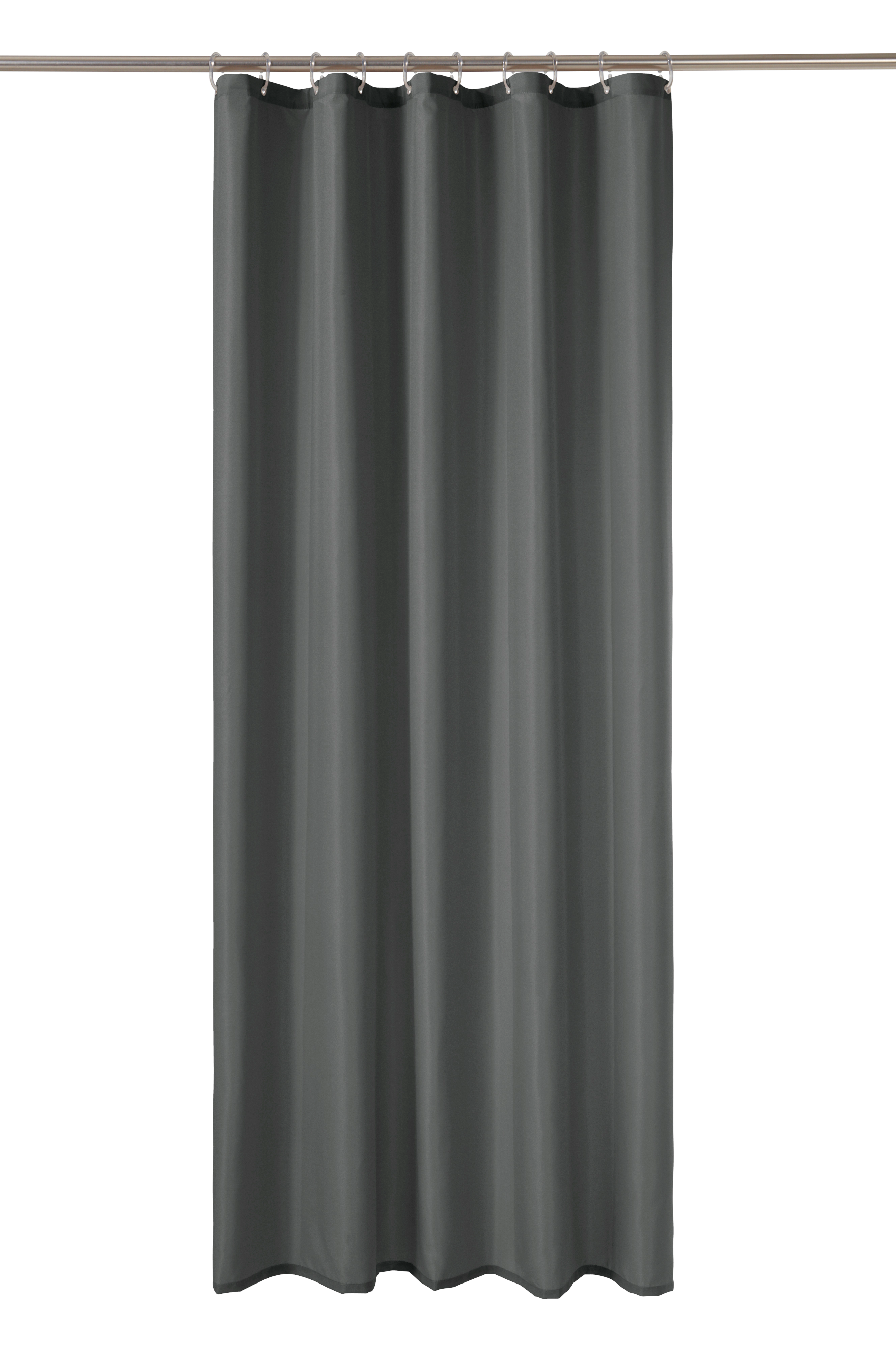 Einfarbiger Duschvorhang mit zehn matten, farblich abgestimmten Aufhängeösen. Das Modell aus Polyester ist in vielen schönen Farben erhältlich. Der Stoff hat ein wasserabweisendes Finish.