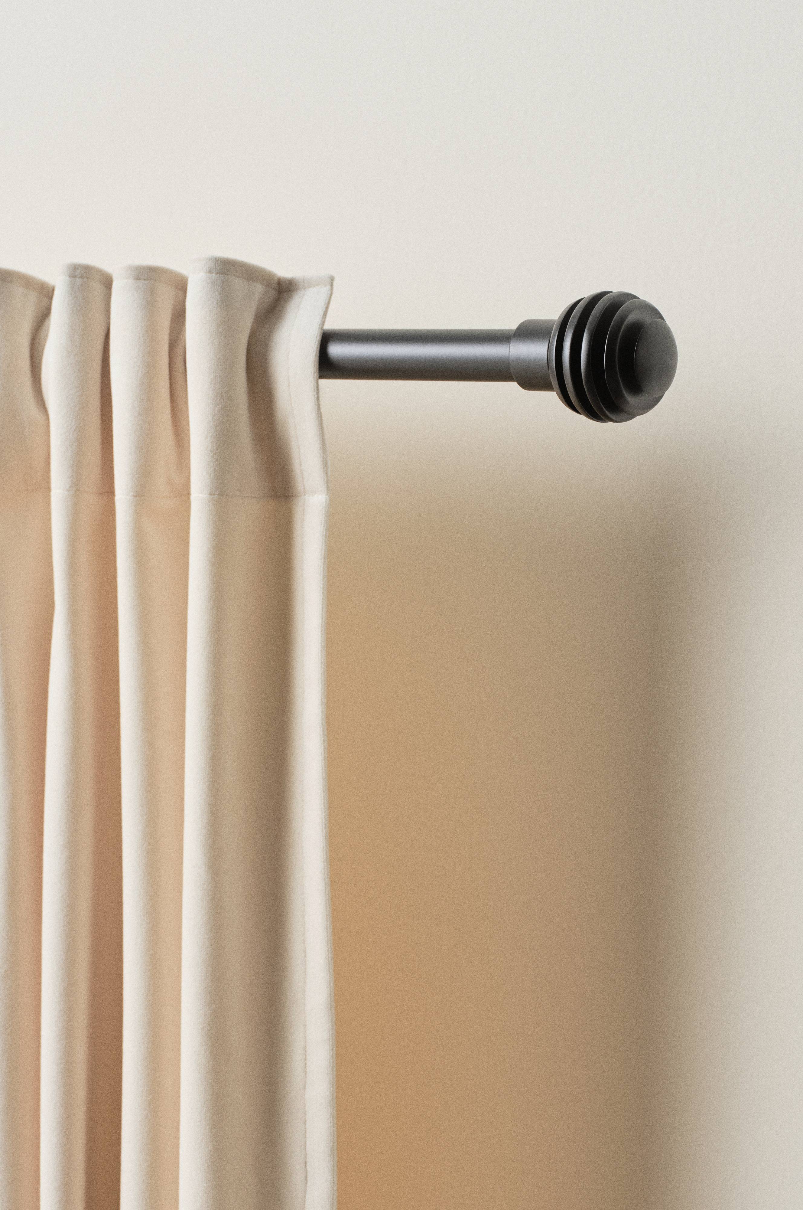 Gardinenstange und Halter sind aus Eisen, die gegossenen Endstücke aus einer Zinklegierung gefertigt. Kirsch AURA hat ein klassisches und zeitloses Design. Die Gardinenstange ist längenverstellbar, d. h. dein Fenster muss keine Standardmaße haben. Dank der verstellbaren Halter kannst du den Abstand von der Wand von 10 bis 15 cm selbst festlegen. So hängt die Gardine frei herunter und wird nicht vom Fensterbrett behindert. Das Set umfasst 1 verstellbare Gardinenstange, 2 Endstücke, 2 verstellbare Wandhalterungen, Dübel und Schrauben. Bei der Montage entscheidet stets die Beschaffenheit des Untergrunds über die Art der Befestigung.