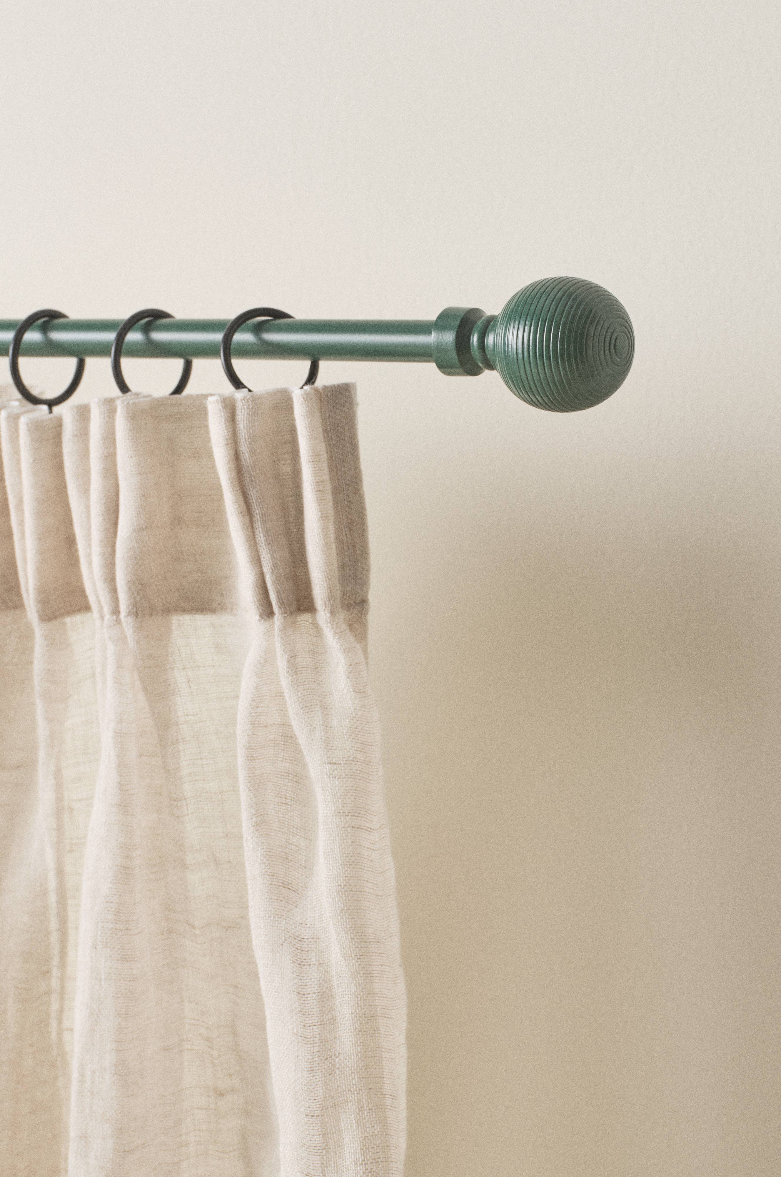 Gardinenstange und Endstücke aus Metall. BALISTA schmückt sich an jedem Ende mit einem runden Endstück mit Strukturkante. Die Endstücke werden an die Gardinenstange geschraubt. Inkl. 2 Wandhalterungen, Schrauben und Dübel. Bei der Montage entscheidet stets die Beschaffenheit des Untergrunds über die Art der Befestigung.