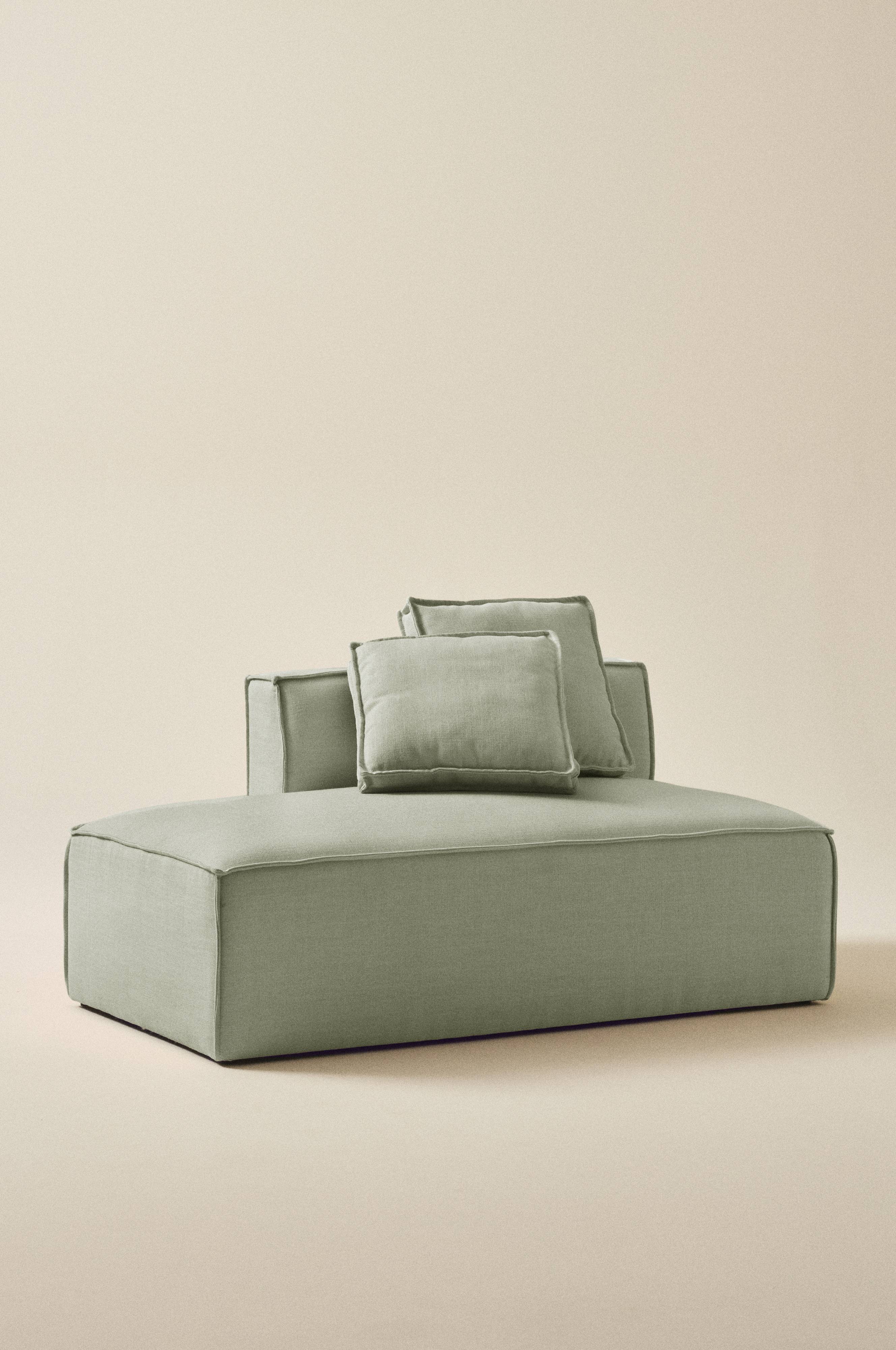 Dieses Modul eignet sich als kleineres Sofa oder Chaiselongue oder auch als Element einer größeren, frei kombinierbaren Sitzgruppe. Der Bezug besteht aus einem strapazierfähigen Leinenmischgewebe mit schöner Leinenstruktur. Der Stoff hat 40.000 Martindale. Im Lieferumfang sind zwei hübsche Kissen im gleichen Stoff wie das Sofa enthalten.