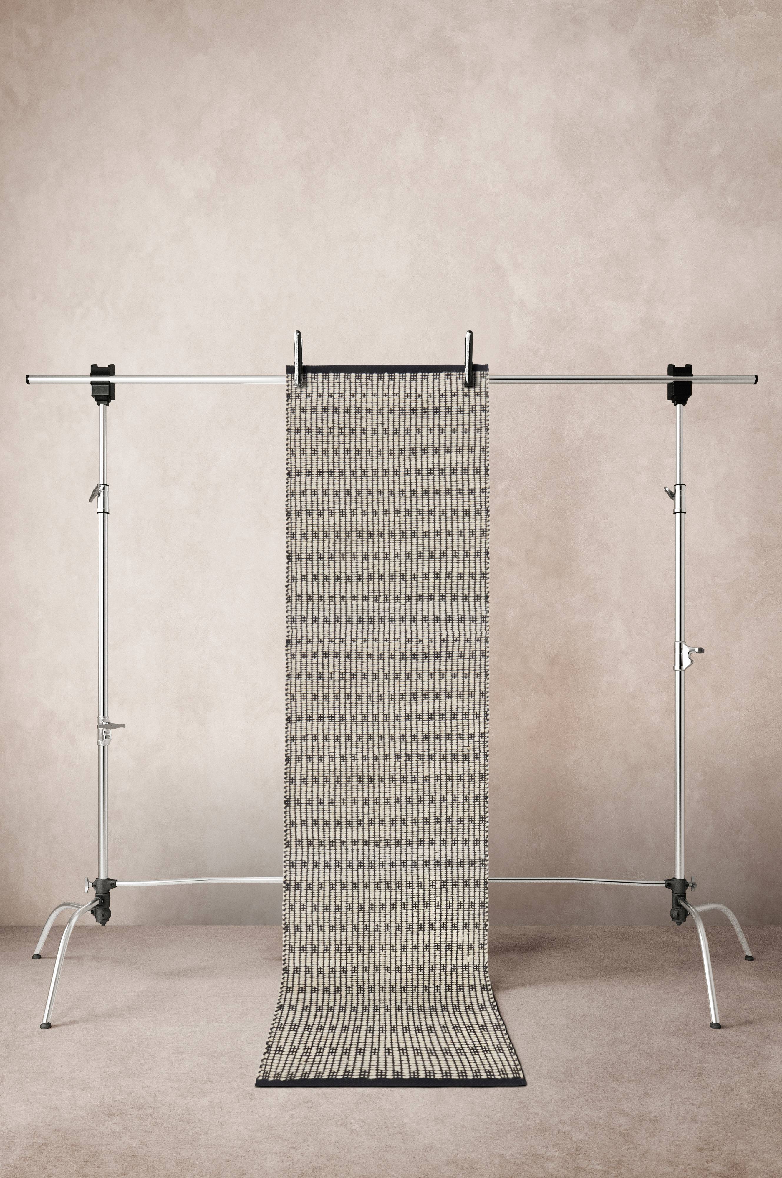 Handgewebter Teppich aus einem schönen Baumwolle/Jute-Gemisch. Der Teppich mit dekorativem Webmuster in Schwarz und Naturweiß hat an den Stirnseiten eine schwarze, stabile Kante. Beim Anbau des rustikalen Naturmaterials Jute wird die Umwelt nur wenig belastet. Da das Modell von Hand gefertigt wird, ist jeder Teppich ein Unikat. Dicke 0,5 cm. 1900 g/m².