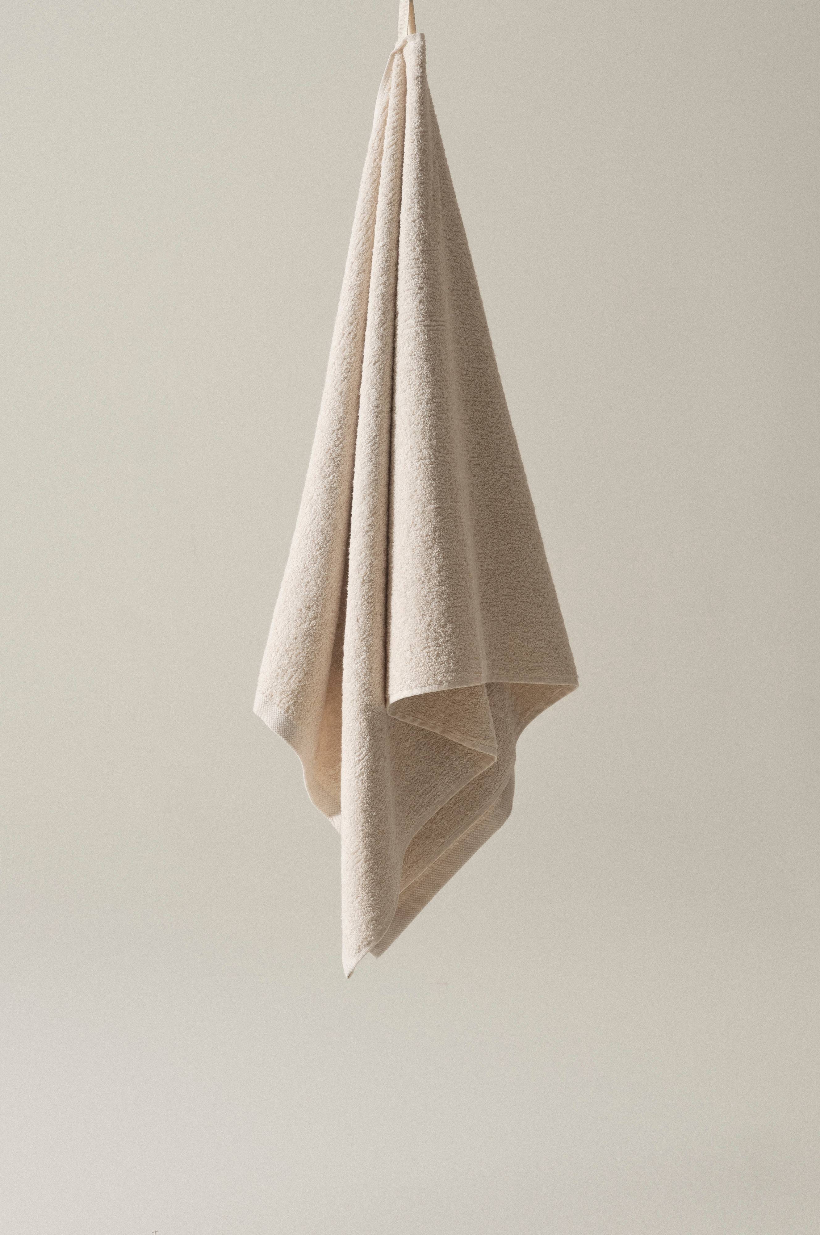 Badehandtuch aus weichem Baumwollfrottee in einem gleichteiligen Mix aus Bio-Baumwolle und recycelter Baumwolle. Dieses leicht melierte Badehandtuch hat unterschiedliche Strukturen auf Vorder- und Rückseite. Mit seiner dezenten, neutralen Farbe fühlt sich BELLFI in den meisten Badezimmern zu Hause. Grammgewicht 450 g/m².