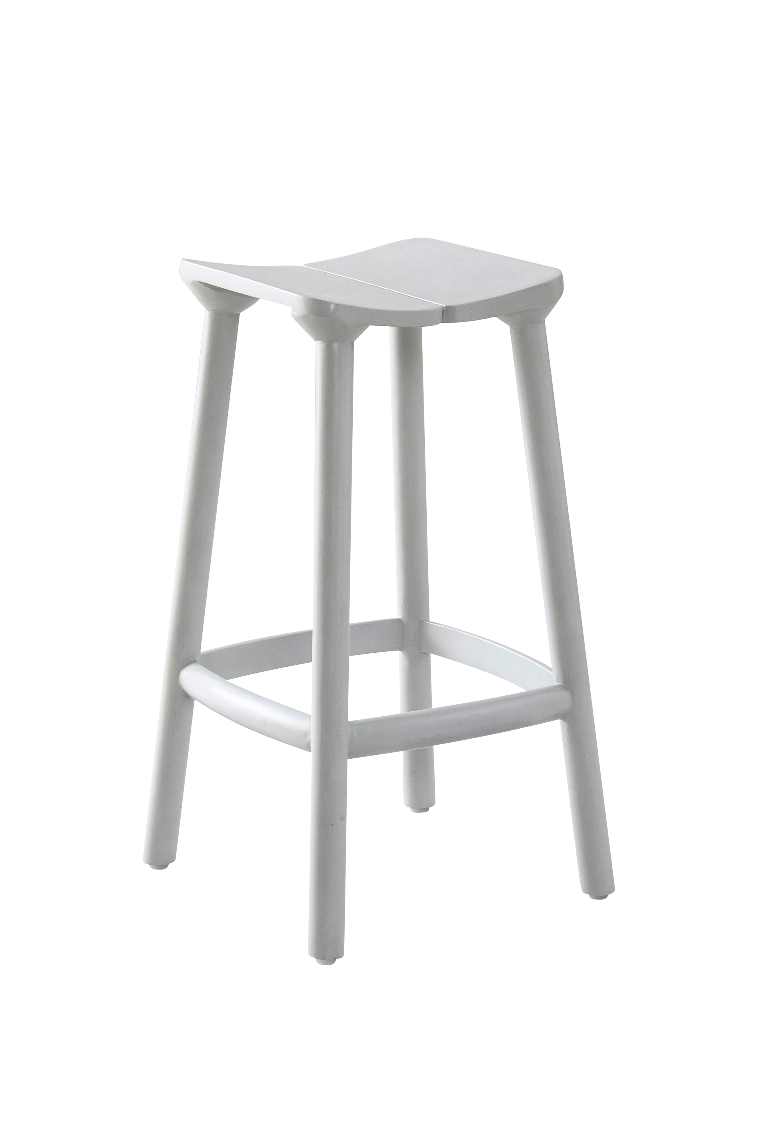 Lackierter Hocker aus Mangoholz. Dieser Barhocker mit spannender Formgebung ist aus Massivholz gefertigt und in mehreren schönen Lackierungen erhältlich.