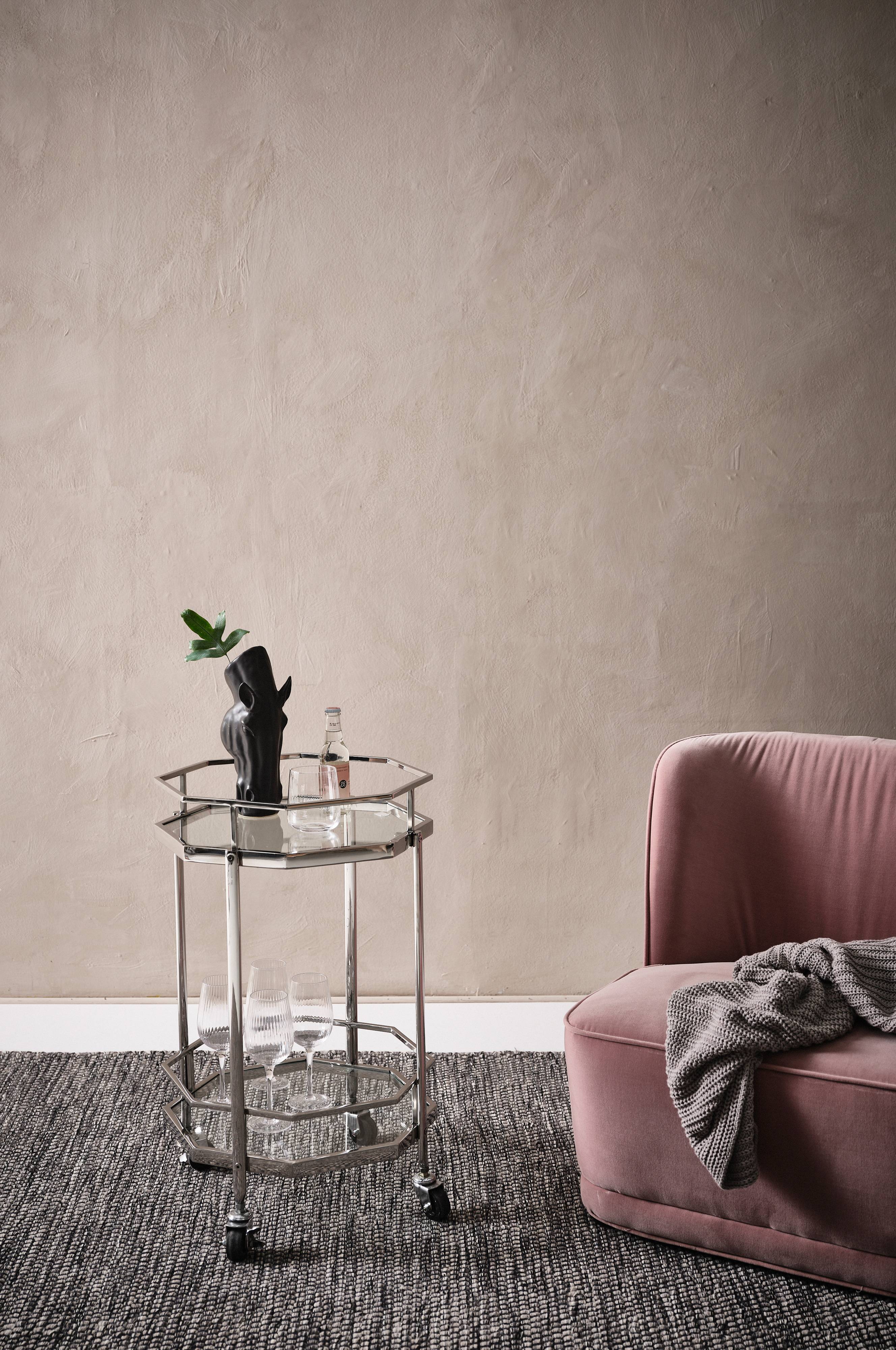 Servierwagen aus Metall mit Ober- und Unterplatte aus Klarglas. Dank der vier kleinen Rollen lässt sich der Wagen mühelos verschieben. Das überaus vielseitige Möbelstück empfiehlt sich auch als Ablage- oder Beistelltisch. Einige Montageschritte sind erforderlich; siehe die beiliegende Anleitung.