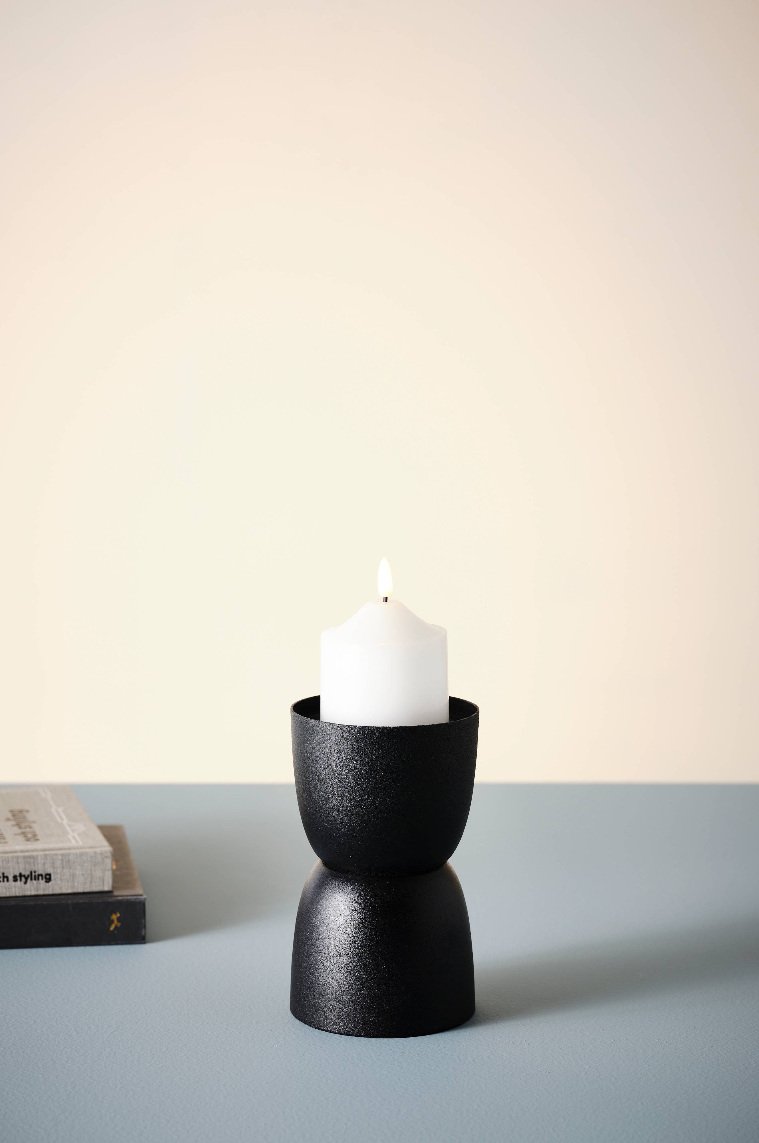 Kerzenleuchter aus Eisen mit Struktur. Ein formschöner Kerzenleuchter für Stumpenkerzen wertet die gedeckte Tafel zusätzlich auf. Kerzen nicht enthalten.