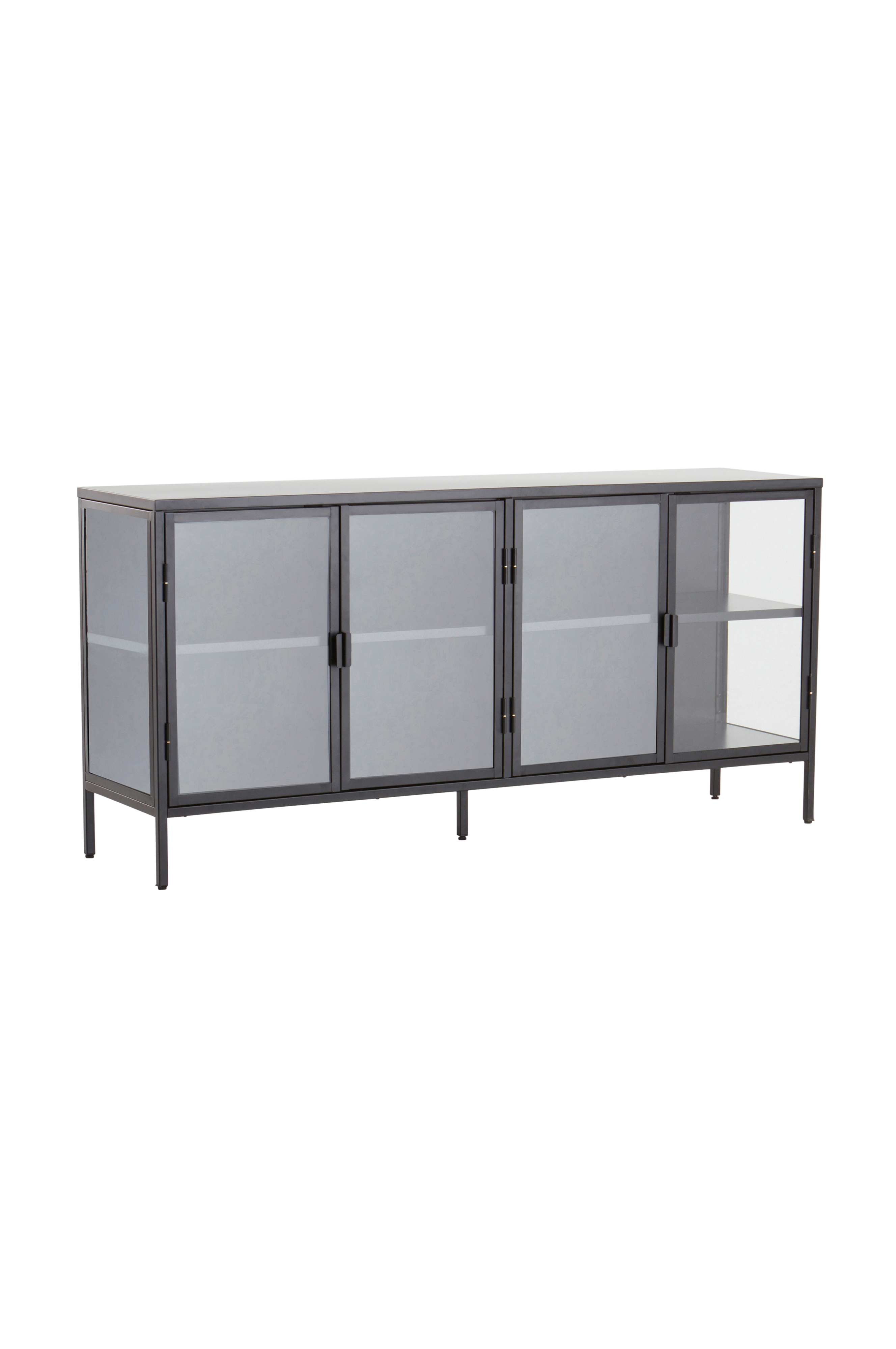 Sideboard aus Blech, mit Türen aus gehärtetem Glas. Dank der praktischen, tiefen Einlegeböden kommen Deko-Objekte und dein Lieblingsgeschirr in BLACKBURN schön zur Geltung.