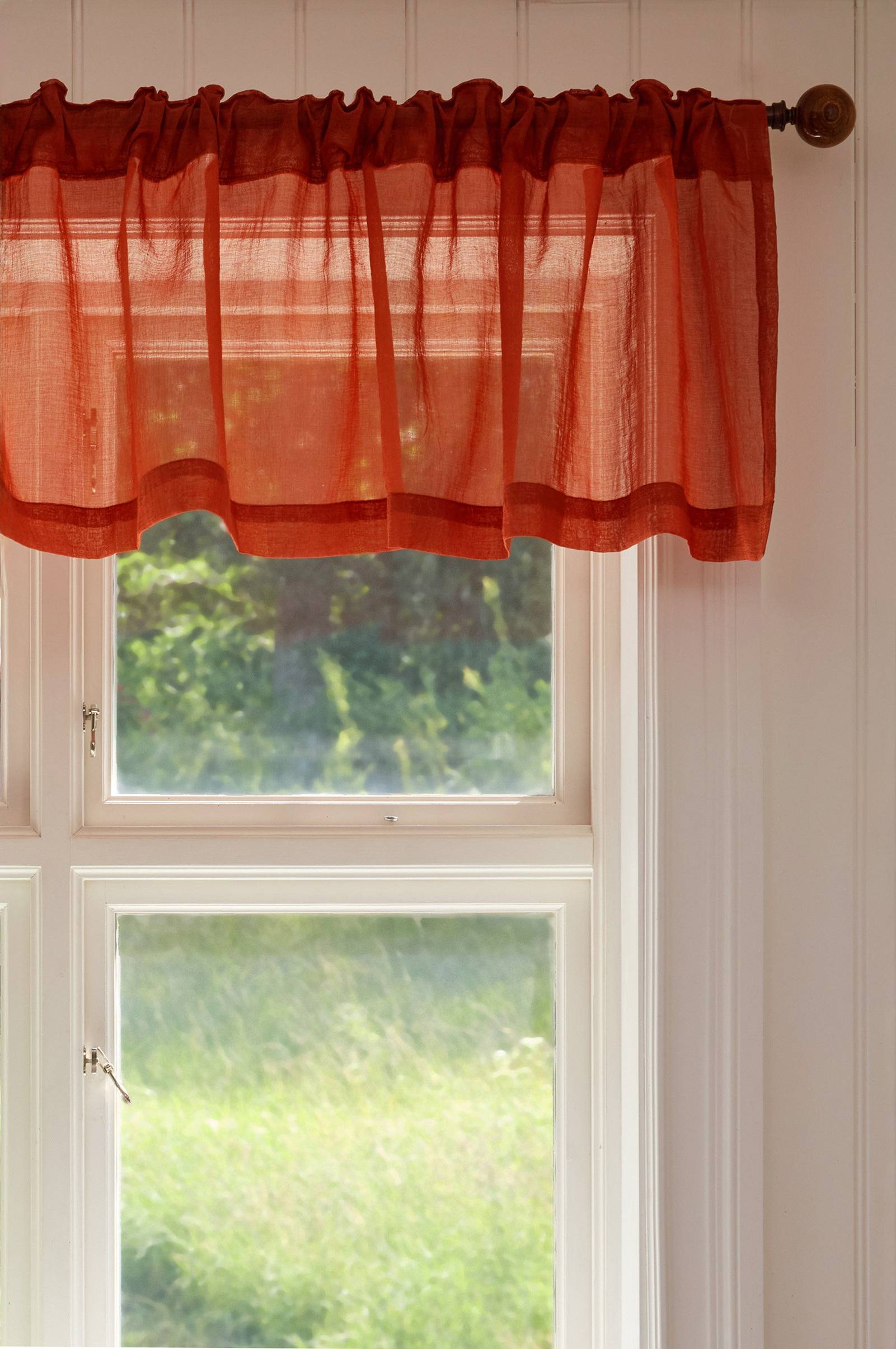 Einfache und zarte Gardinen, die perfekt in die Küche passen.