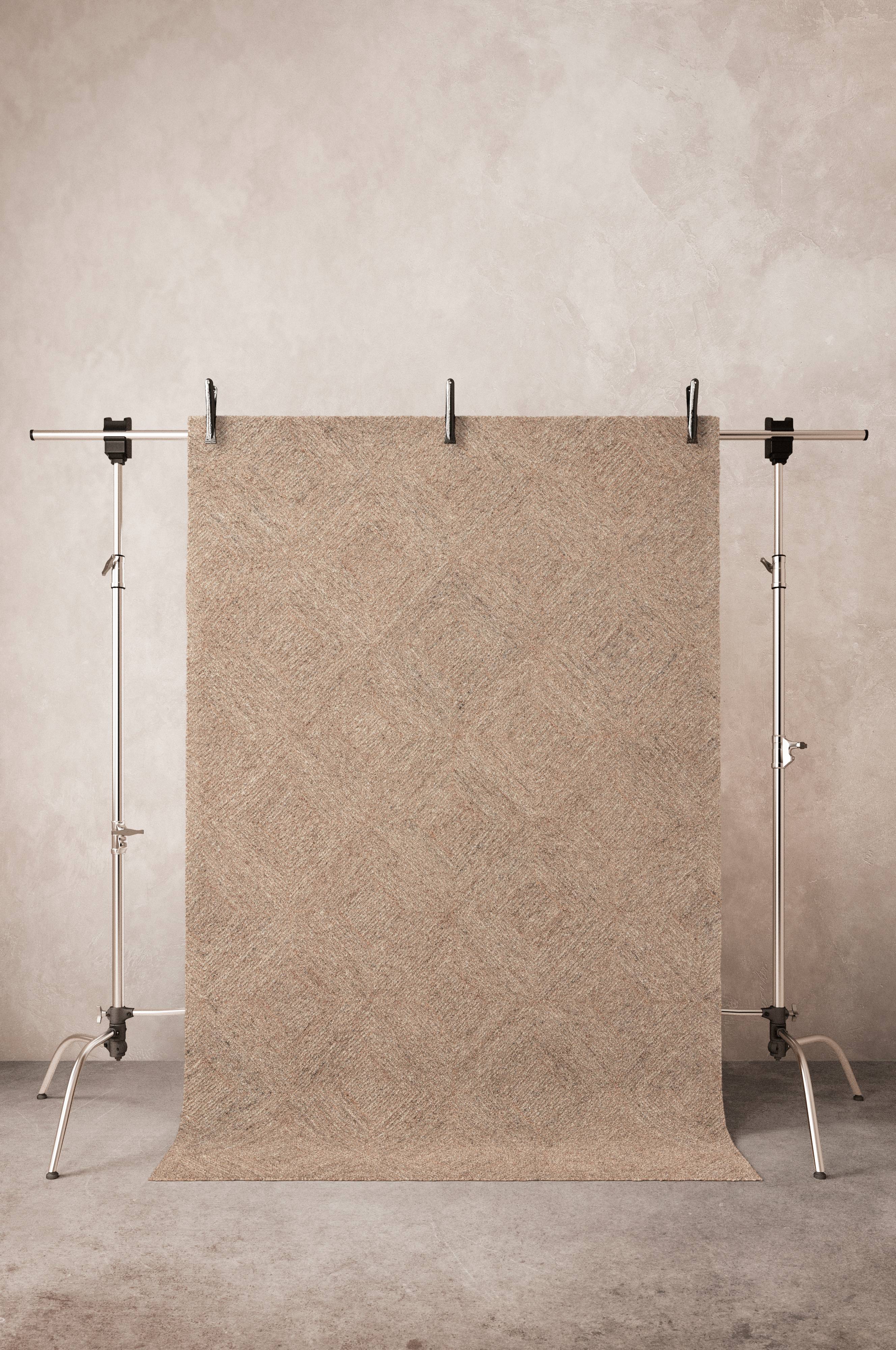 Der handgetuftete Teppich aus Jute und Wolle ist ein Stilmittel, das wenig Platz benötigt. 3600 g/m².
