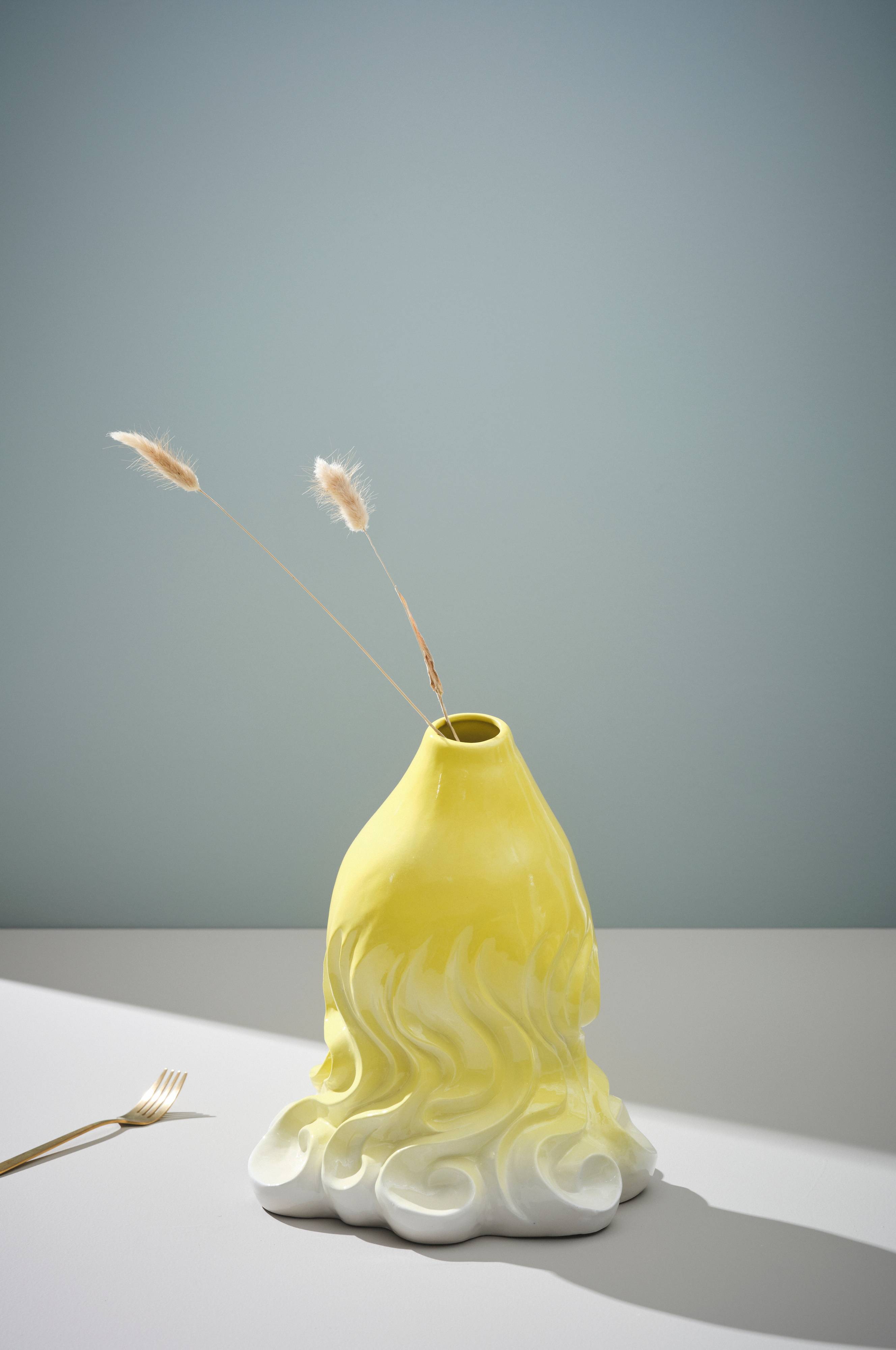 Diese Keramikvase besticht über die reine Funktion hinaus auch als Deko-Objekt. Die Vase wird in ihrer schönen Form von Hand gefertigt und anschließend glasiert, wobei die Farbe am Boden hell ist und nach oben hin dunkler wird. Da das Modell von Hand gefertigt wird, ist jedes Exemplar ein Unikat. Keramik ist feuchtigkeitsdurchlässig.