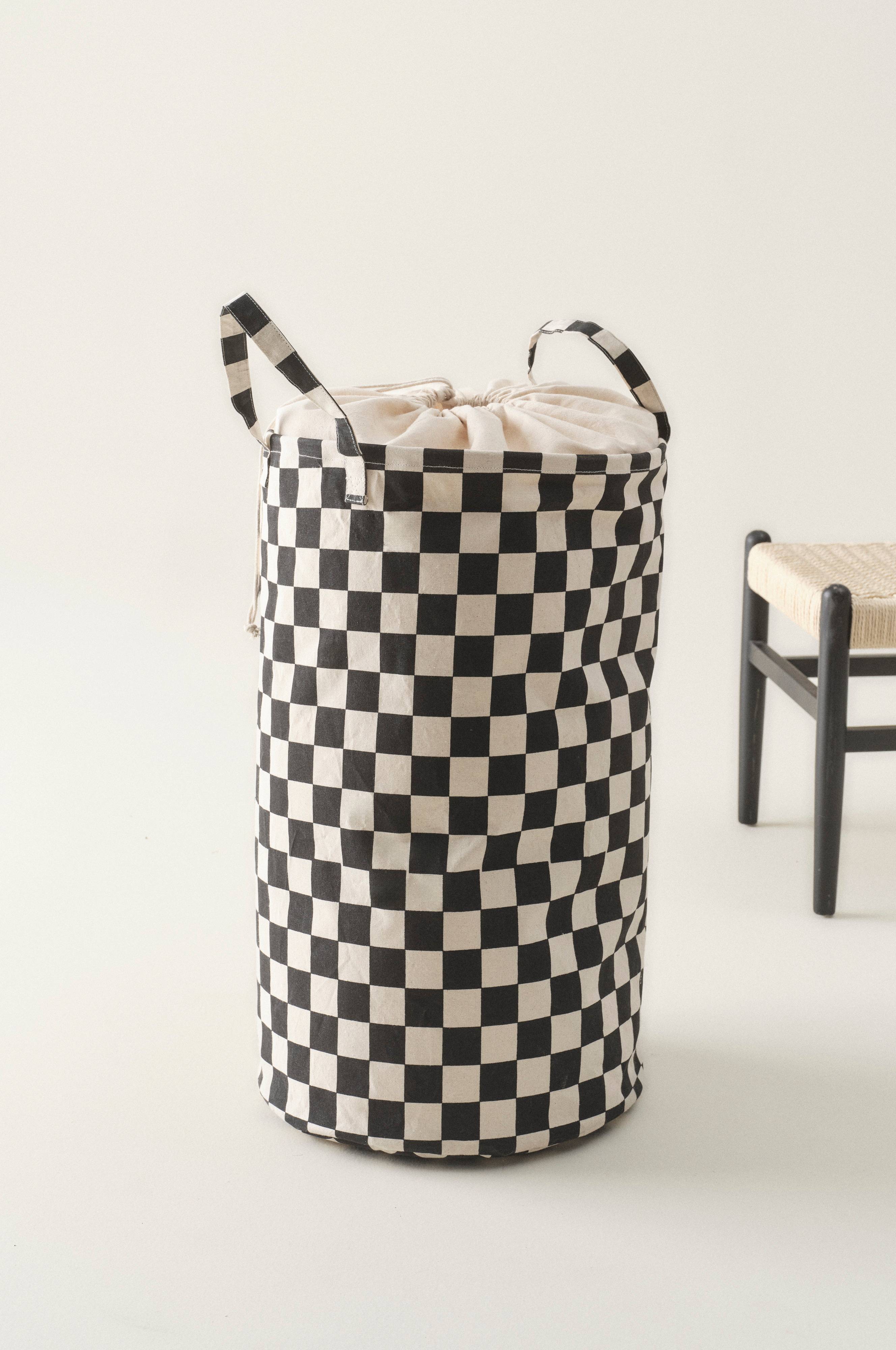 Wäschekorb aus einem gewebten Baumwollstoff mit aufgedrucktem Schachbrettmuster. Die Innenseite ist mit Polypropylen laminiert. Tunnelzugmodell mit zwei Henkeln. Mit CHECK OUT herrscht Ordnung bei der Schmutzwäsche. Der Wäschkorb ist auch fürs Badezimmer geeignet. Und wenn es Zeit zum Waschen ist, lässt er sich leicht zur Waschmaschine oder zum Waschsalon transportieren.