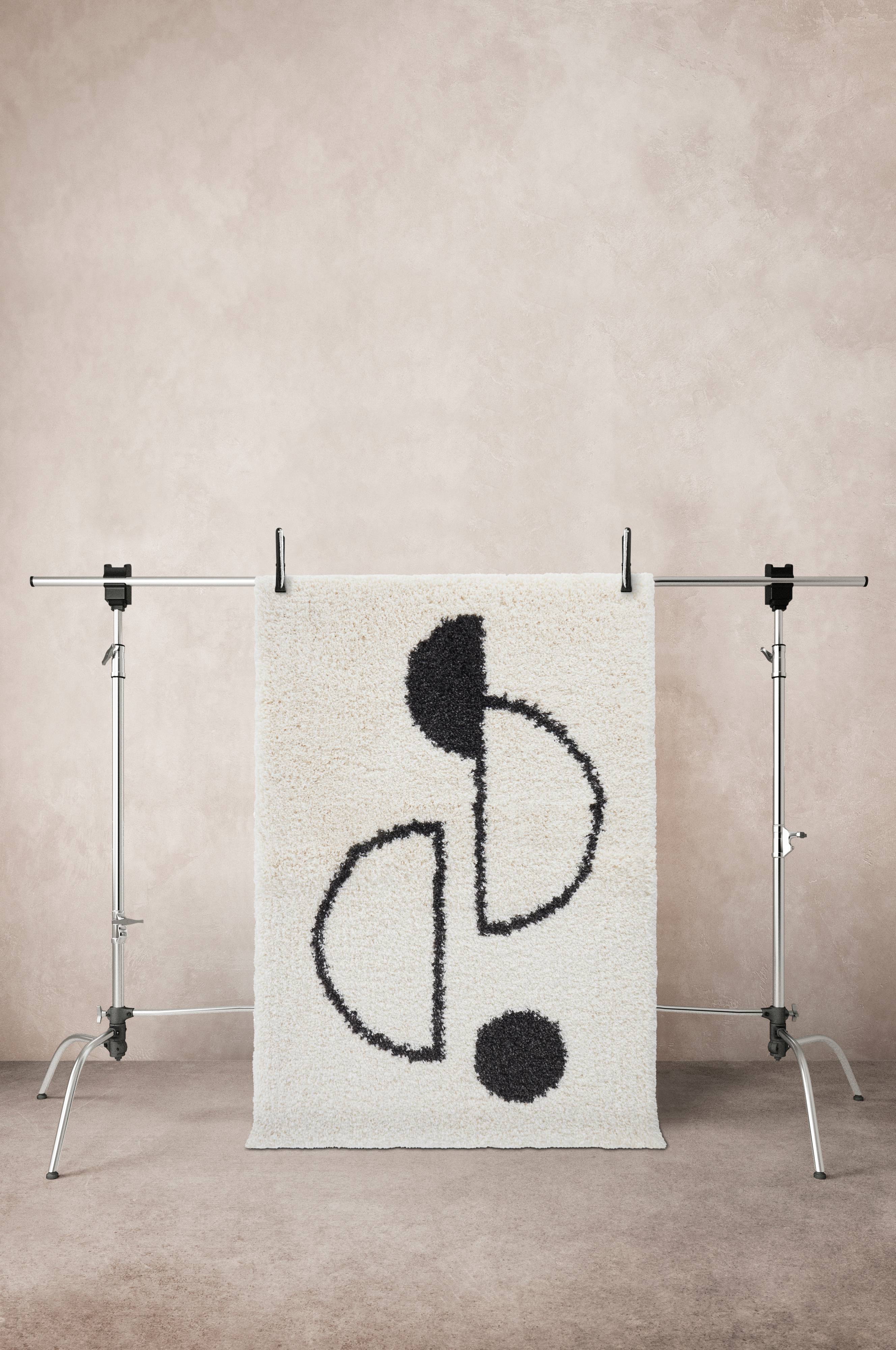 Florteppich mit grafischem Muster auf hellem Untergrund. Erinnert das Dessin vielleicht an den Mond in seinen verschiedenen Phasen? Dem weichen, flauschigen Garn des wunderbar dichten Flors wurden feine glänzende Fäden beigemischt. Der Teppich dient nicht nur als bequeme Sitzunterlage, sondern wirkt auch geräuschdämpfend und passt prima ins Kinderzimmer. Florhöhe 4,5 cm. Dicke 5 cm. 2700 g/m².