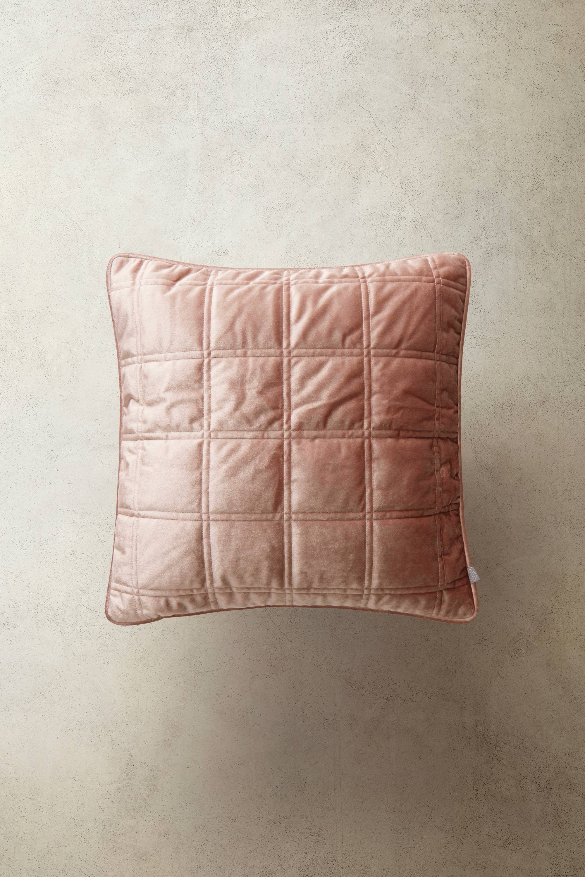 1er-Pack Kissenhülle aus gequiltetem Samt mit gestepptem Karomuster und passender Samtrückseite. Reißverschluss unten.