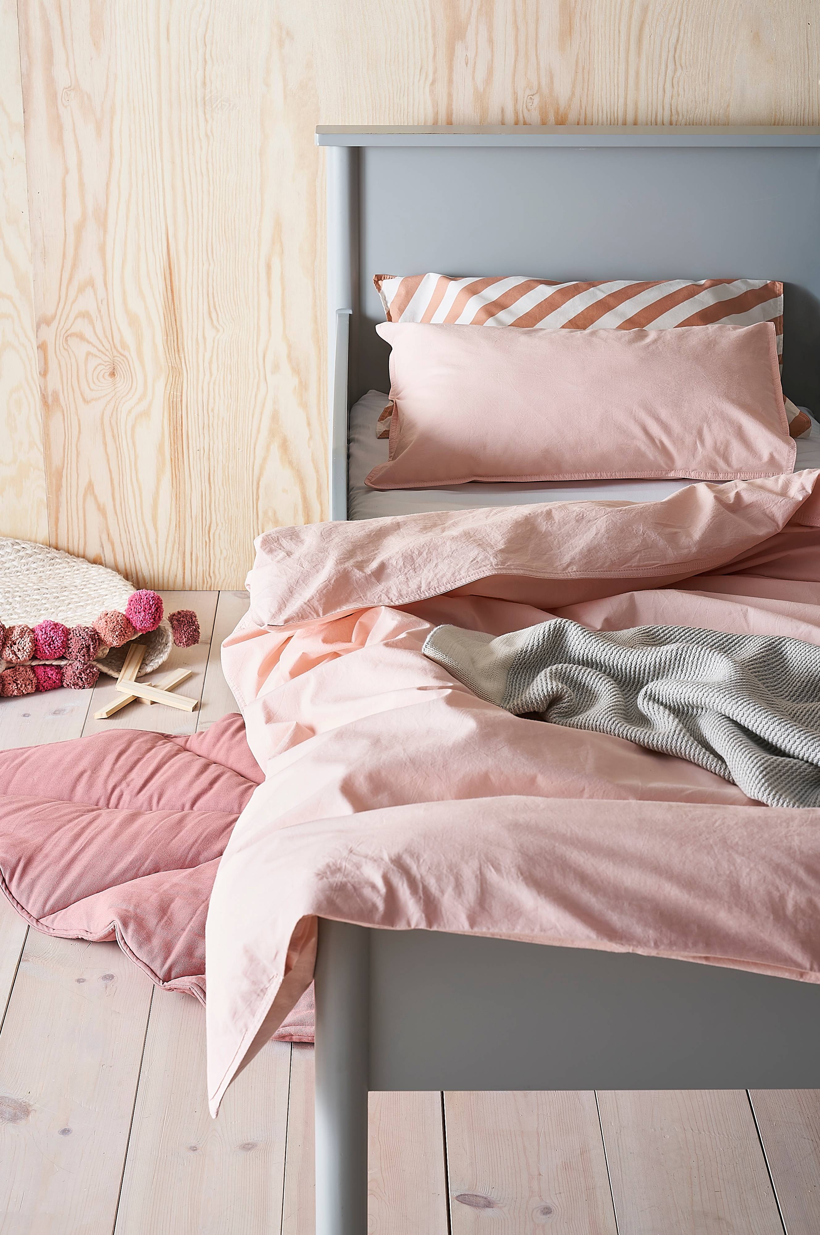 2-teilige, stückgewaschene Bettwäsche aus Bio-Baumwollperkal. Bettwäsche aus weicher, luftiger Baumwolle sorgt für hohen Schlafkomfort. Die Bettwäsche ist auf Babybetten abgestimmt. Fadendichte 200 TC. (Mit der Fadendichte bzw. dem TC-Wert (Thread Count) wird die Anzahl der Fäden in Kette und Schuss pro Quadratzoll angegeben. Je höher die Fadendichte, desto höher die Qualität.)