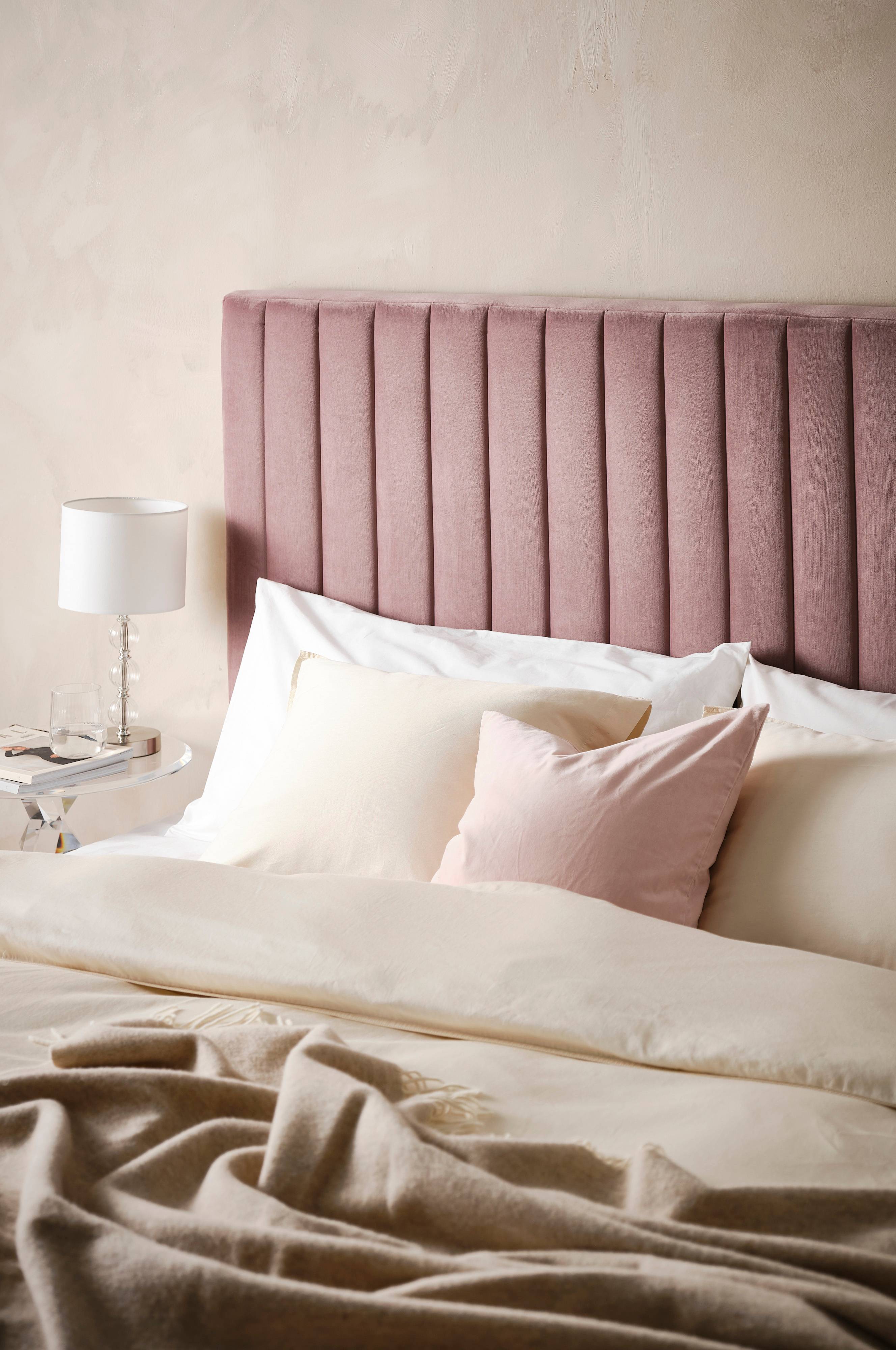 Für frischen Wind im Schlafzimmer sorgt unser freistehendes Kopfteil DERBY. Mit seinem weichen Samtbezug und den senkrechten Steppnähten verströmt es eine luxuriöse Atmosphäre. Inklusive Wandhalterung. Die Scheuerfestigkeit des Stoffs beträgt 28 000 Martindale.