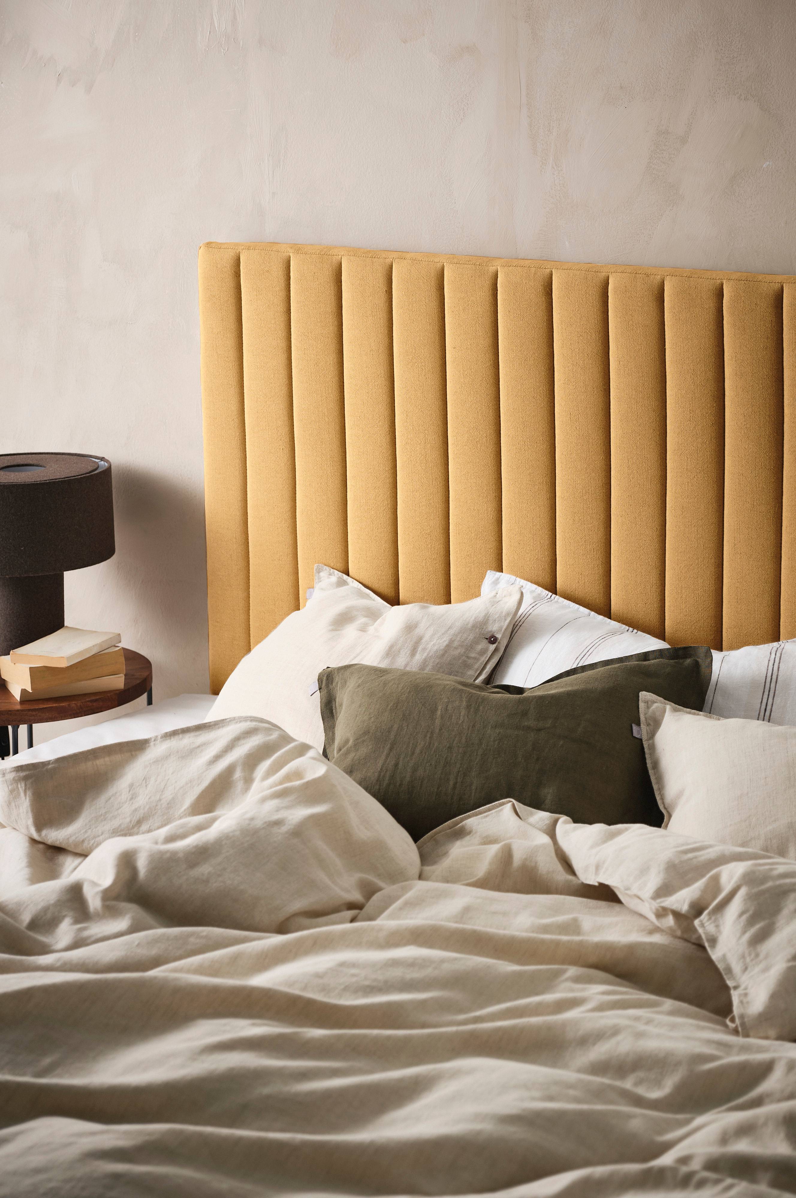 Für frischen Wind im Schlafzimmer sorgt unser frei stehendes Kopfteil DERBY. Mit seinem soften Bezug aus Leinengemisch, der weichen Polsterung und den senkrechten Steppnähten verströmt es eine luxuriöse Atmosphäre. Inklusive Wandhalterung.