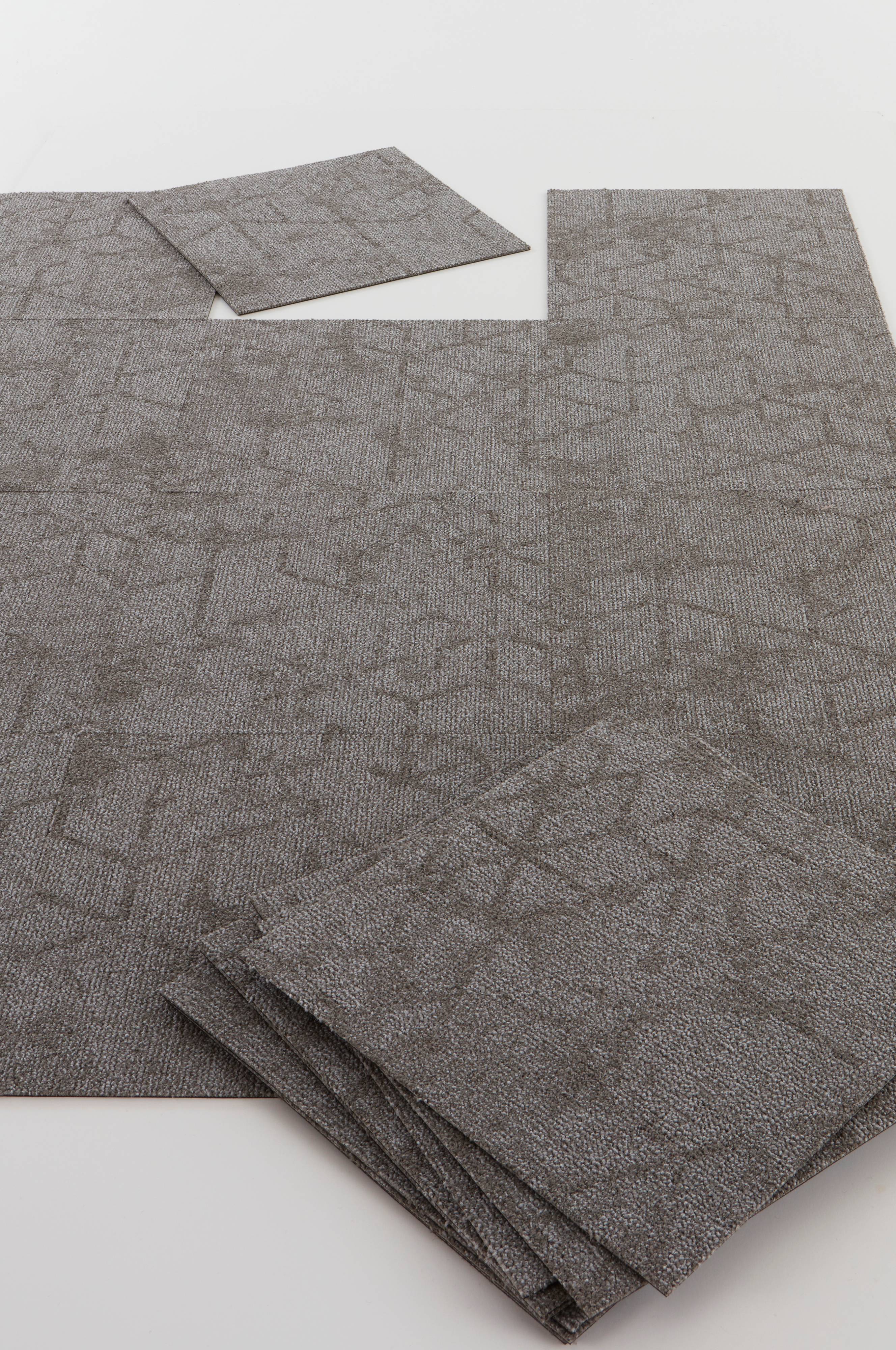 20 Teppichfliesen zum Verlegen als Teppichboden. Die quadratischen Teppichfliesen sind getuftet und haben einen dichten, robusten Flor aus Nylon 6 ECONYL® (Recyclingpolyamid). DIAMOND ART ist überaus strapazierfähig und kann sich sowohl in privaten als auch in öffentlichen Umgebungen sehen lassen. Das dezente Muster ist mit unterschiedlich getöntem Garn gearbeitet. Auf Teppichfliesen geht es sich weicher als z. B. auf Holzböden; sie wirken geräuschdämpfend und sorgen für ein wohnlicheres Ambiente.