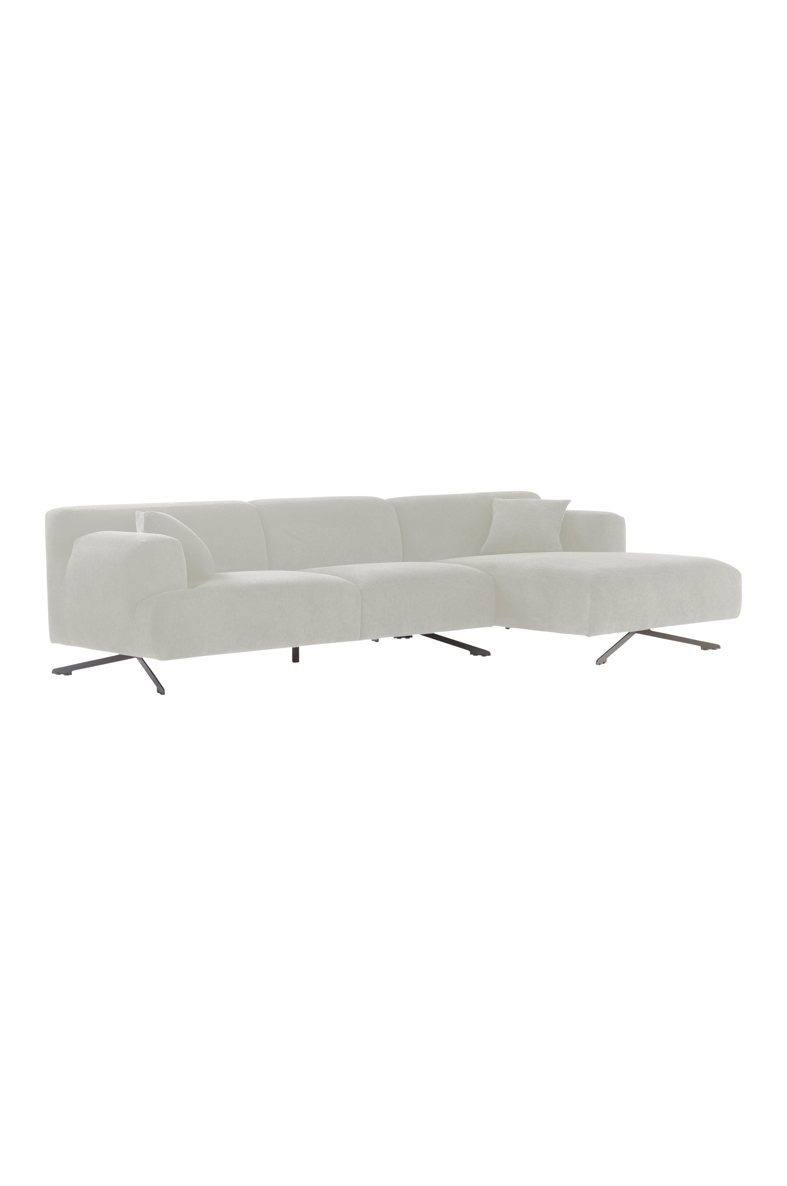 Sofa Design: Der 3-Sitzer von EDE bietet modernen Komfort mit einem eleganten Stoff in Leinenoptik. Die Chaiselongue auf der rechten Seite bietet geräumige Sitzgelegenheiten, die sich perfekt zum Entspannen und Faulenzen eignen. Die minimalistische Ästhetik und die robuste Konstruktion sind ein stilvoller Blickfang für jedes Wohnzimmer. Weiche Kissen sorgen für zusätzlichen Komfort, so dass dieses Sofa sowohl funktional als auch einladend ist. Es ist ideal für alle, die bei ihrer Inneneinrichtung sowohl Eleganz als auch Entspannung suchen.