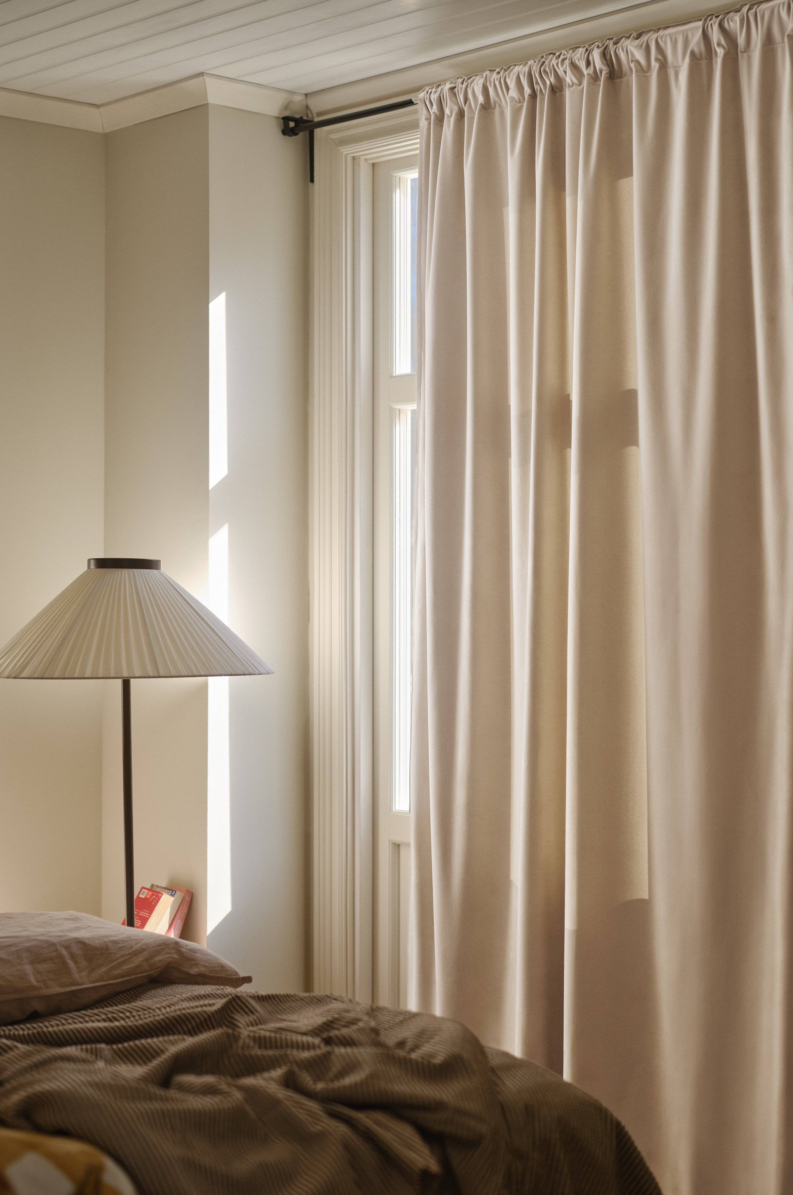1-Pack Vorhanglänge für Verdunkelung. ELSIE ist aus einfarbigem Polyester-Samt gefertigt, der zur Hälfte aus recyceltem Material besteht. Samt hat einen schönen Glanz und fühlt sich weich an, die Farbe schimmert wunderschön in unterschiedlichem Licht. ELSIE ist sehr erschwinglich und sieht auf der Rückseite genauso gut aus wie auf der Vorderseite. Der Vorhang ist dicht gewebt, so dass keine Beschichtung auf der Rückseite erforderlich ist. Bitte beachte, dass die verschiedenen Farben in der Verdunkelung variieren.