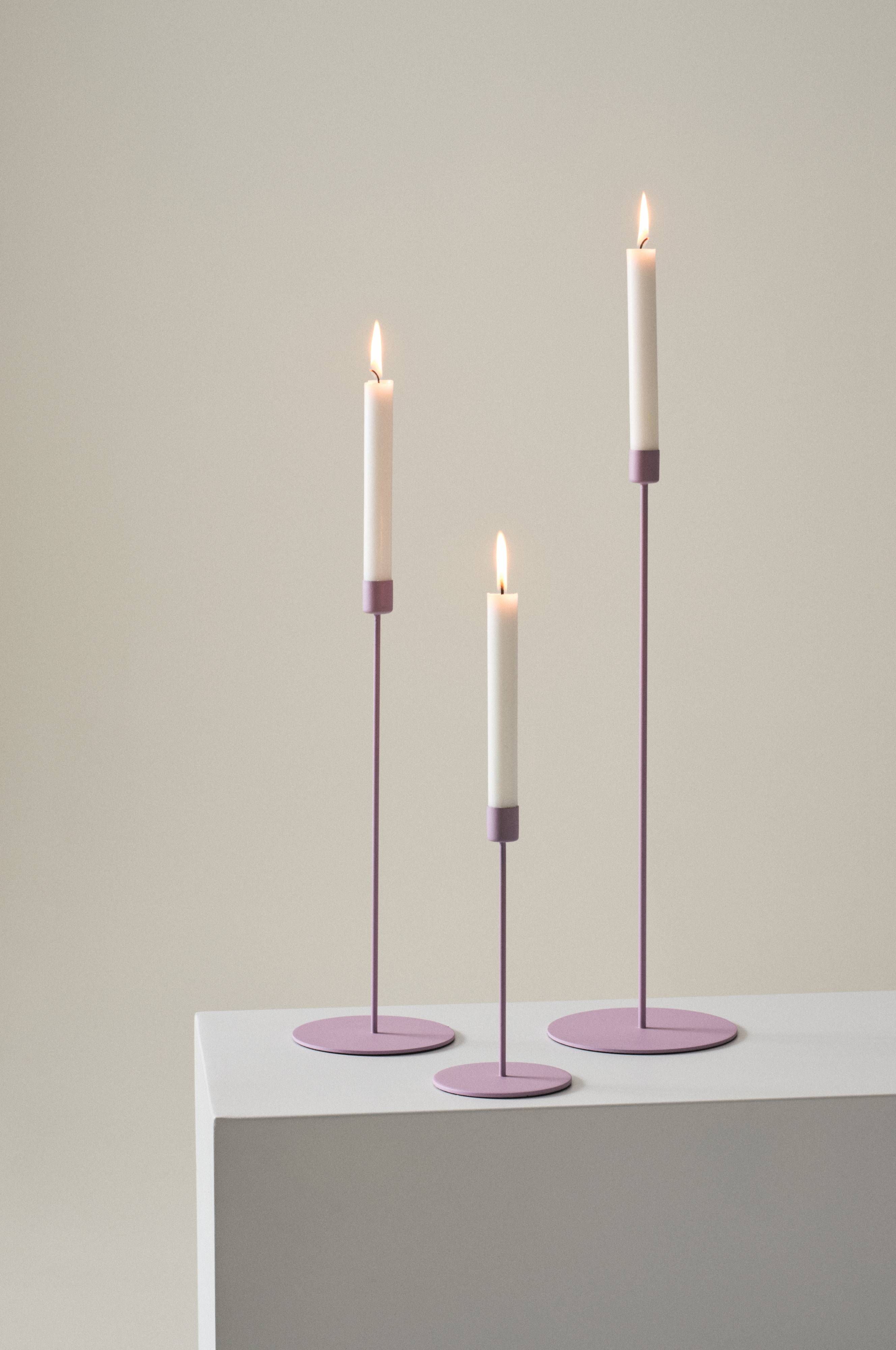 3er-Pack schmale Kerzenleuchter aus pulverbeschichtetem Eisen. Ebenso fest- wie alltagstauglich.