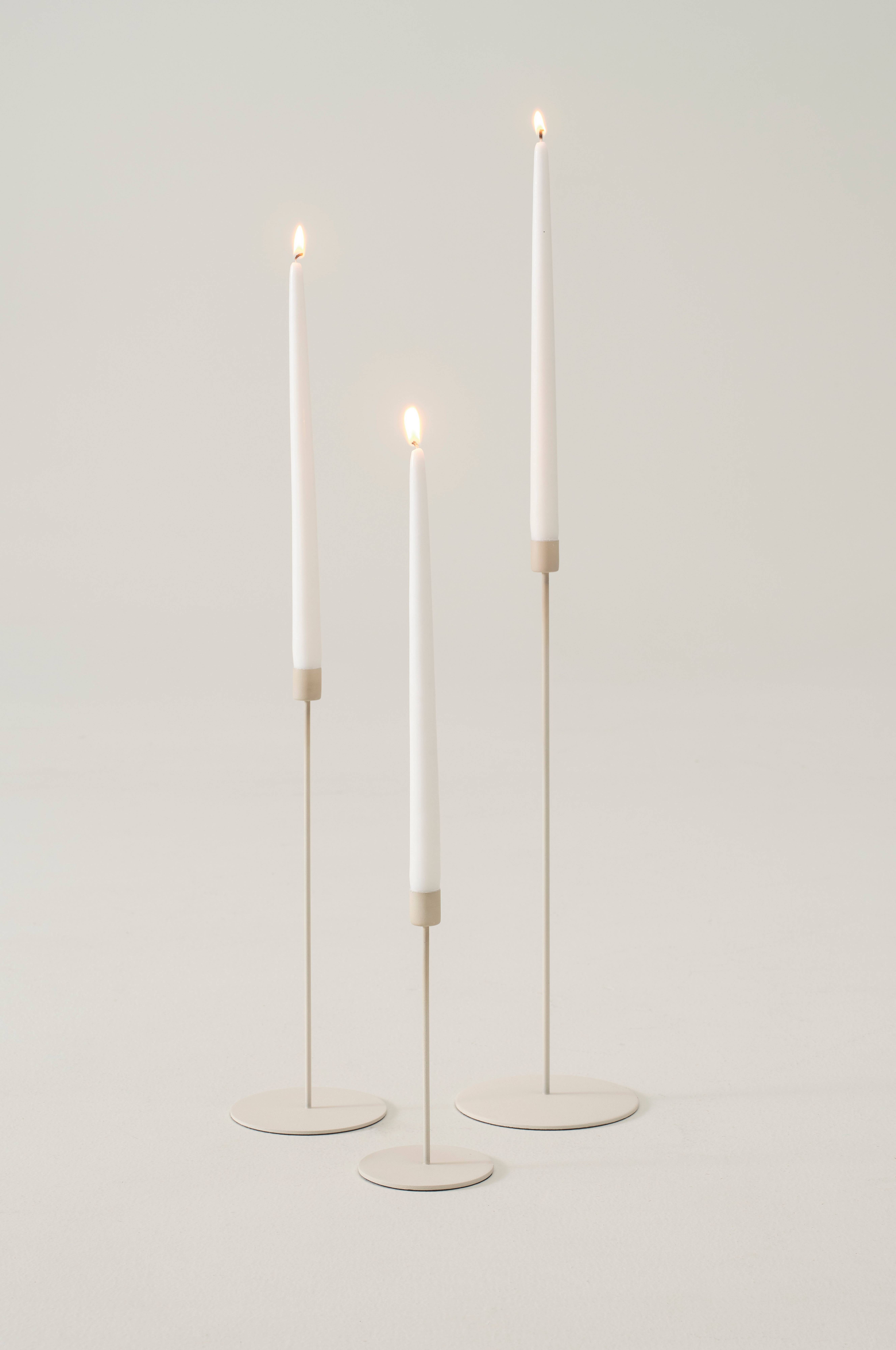 3er-Pack schmale Kerzenleuchter aus pulverbeschichtetem Eisen. Ebenso fest- wie alltagstauglich.