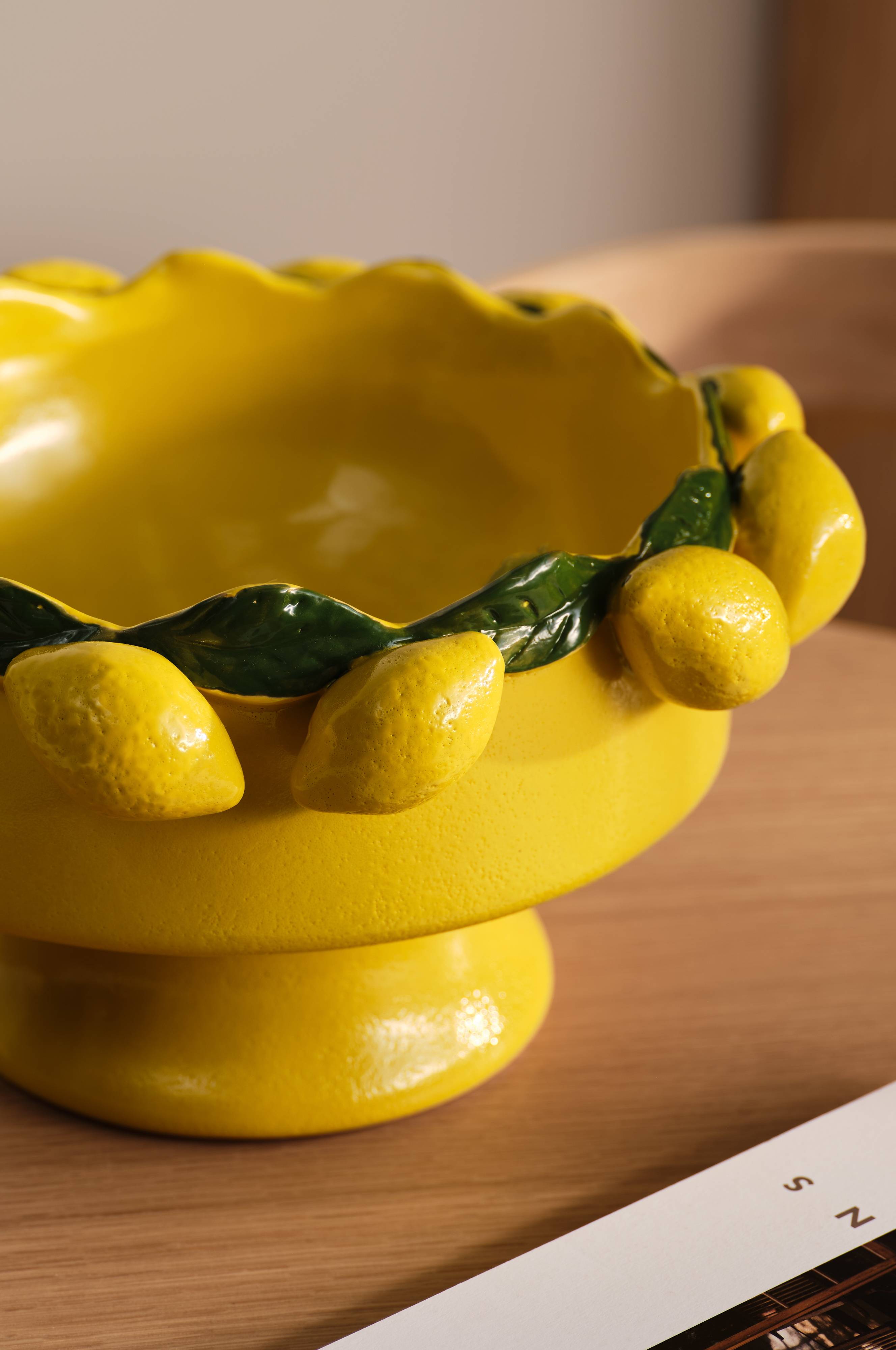 Die EMMA-Dekoschale verleiht jedem Interieur eine reizvolle Note. Dieses vielseitige Stück aus Keramik dient als charmante Schale oder als einzigartiger Blumentopf. Die dekorativen Zitronen verleihen der Schale eine verspielte und stilvolle Note, mit der du deine Einrichtung aufwerten kannst. Ob auf dem Esstisch oder auf der Fensterbank - diese Schale ist ein echter Hingucker in deinem Zuhause.