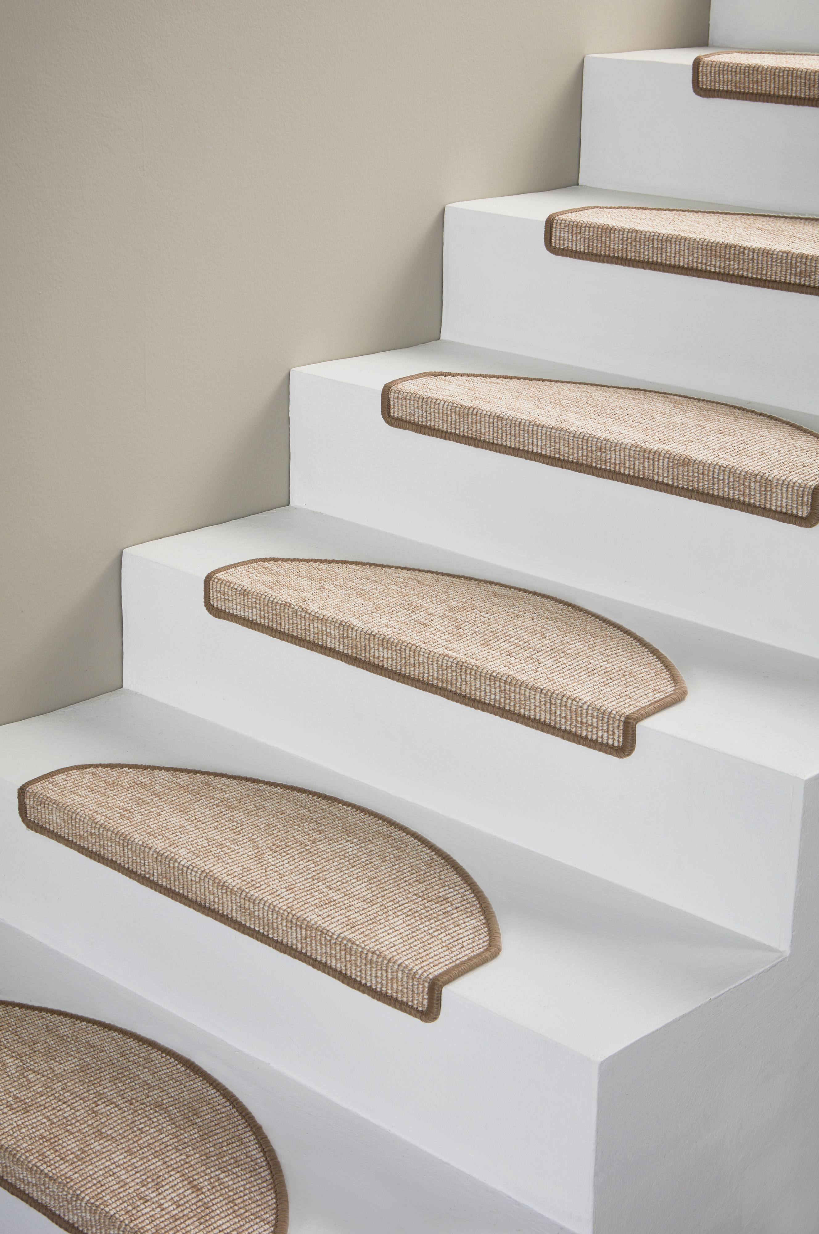 Stufenmatten (15 St.) aus Polypropylen/Polyester-Gewebe. ESCALIER verleiht deiner Treppe eine softe Optik und erhöht die Sicherheit dank der selbstklebenden Unterseite. Die einfarbigen, rechteckigen Matten eignen sich für die meisten Treppen. Eine rechtwinklige Kunststoffschiene mit doppelseitigem Klebeband sorgt für die sichere Positionierung. Dicke: 6 mm.