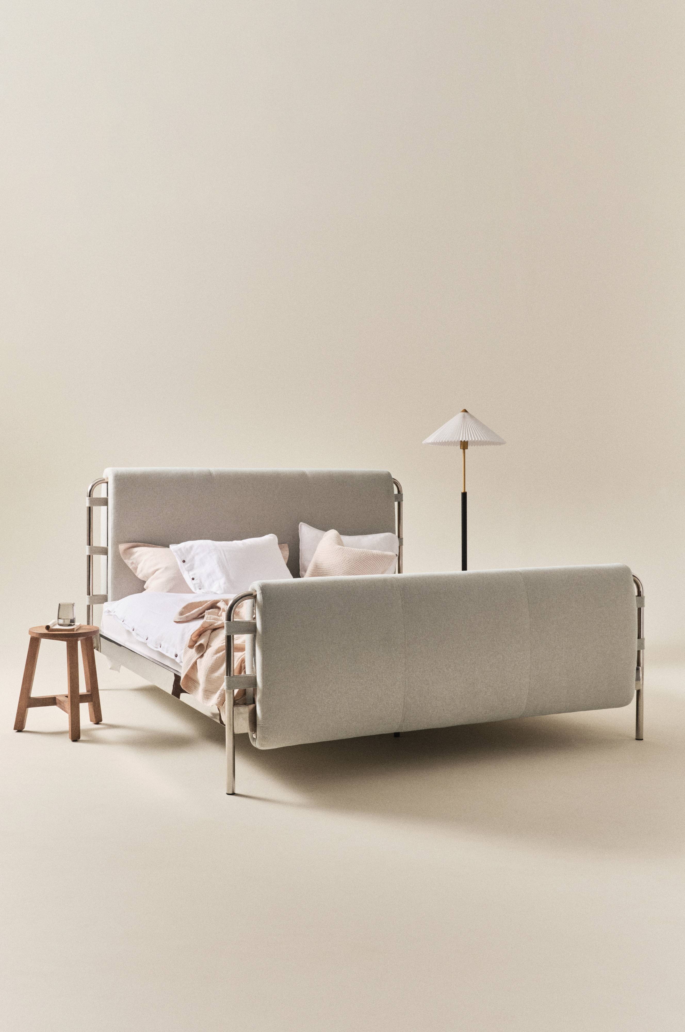 FLOWS ist ein großzügiges und bequemes Bettgestell. Das Besondere an FLOWS ist die durchgehende Konstruktion aus lackiertem Stahl. Sowohl Kopf- als auch Fußteil haben eine dicke Schaumpolsterung und einen Bezug aus einem stilreinen, neutralen Polyesterstoff. Angelehnt an das bequeme Kopfteil, kann man es sich zum abendlichen Lesen oder Genießen des Morgenkaffees richtig gemütlich machen. Das Bettgestell hat einen Lattenrost aus pulverbeschichtetem Stahl. Du ergänzt dieses Bettgestell mit einer Matratze deiner Wahl. Matratzen sind separat erhältlich. Einige Montageschritte sind erforderlich. Inklusive Montageanleitung.