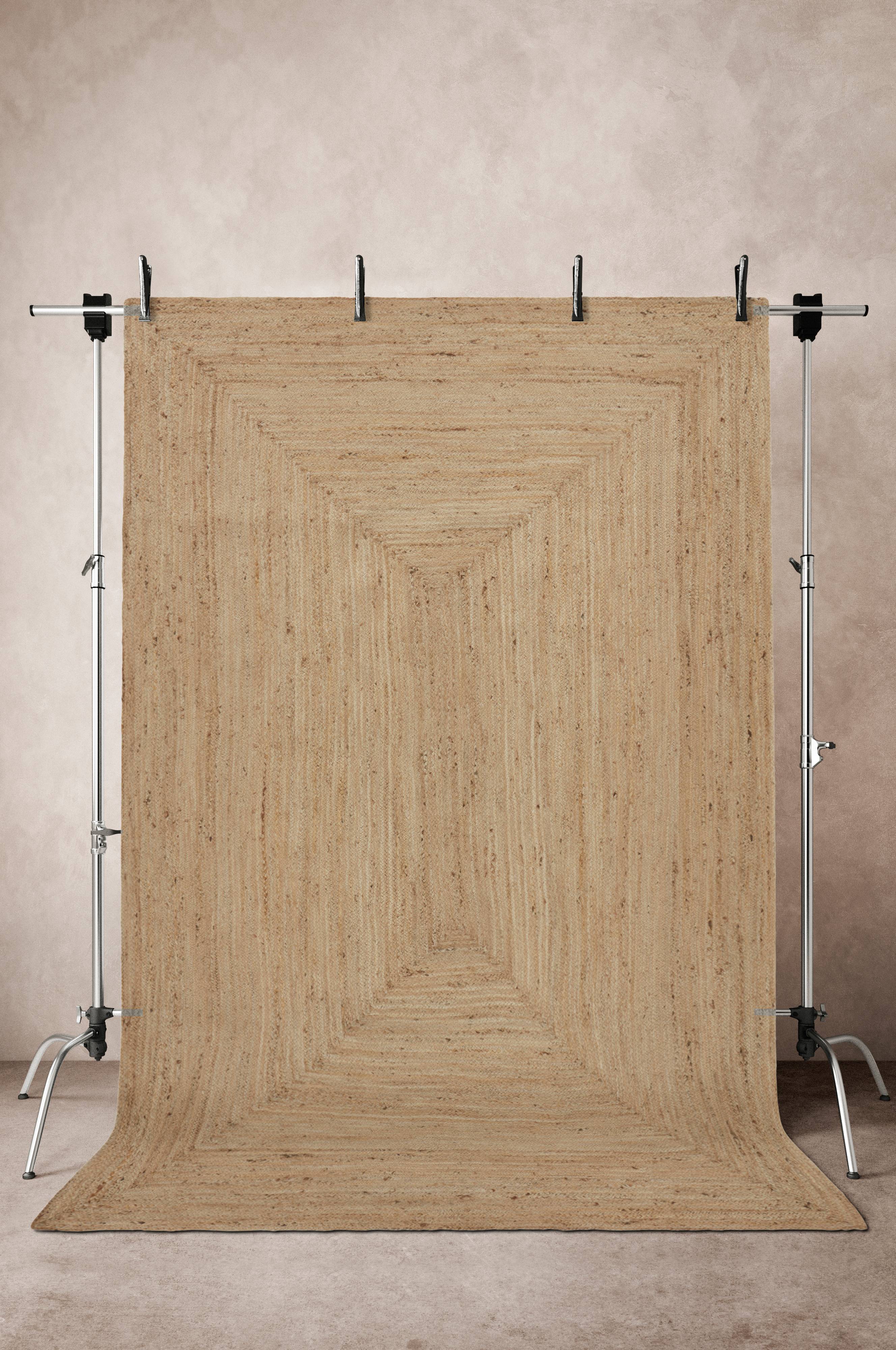Handgewebter Teppich aus Jute, gefärbt in schönen Erdtönen. Der einfarbige Teppich besticht durch seine natürliche Melierung. Jute ist ein kerniges Naturmaterial. Da das Modell von Hand gefertigt wird, ist jeder Teppich ein Unikat. Dicke 0,7 cm. 2100 g/m².