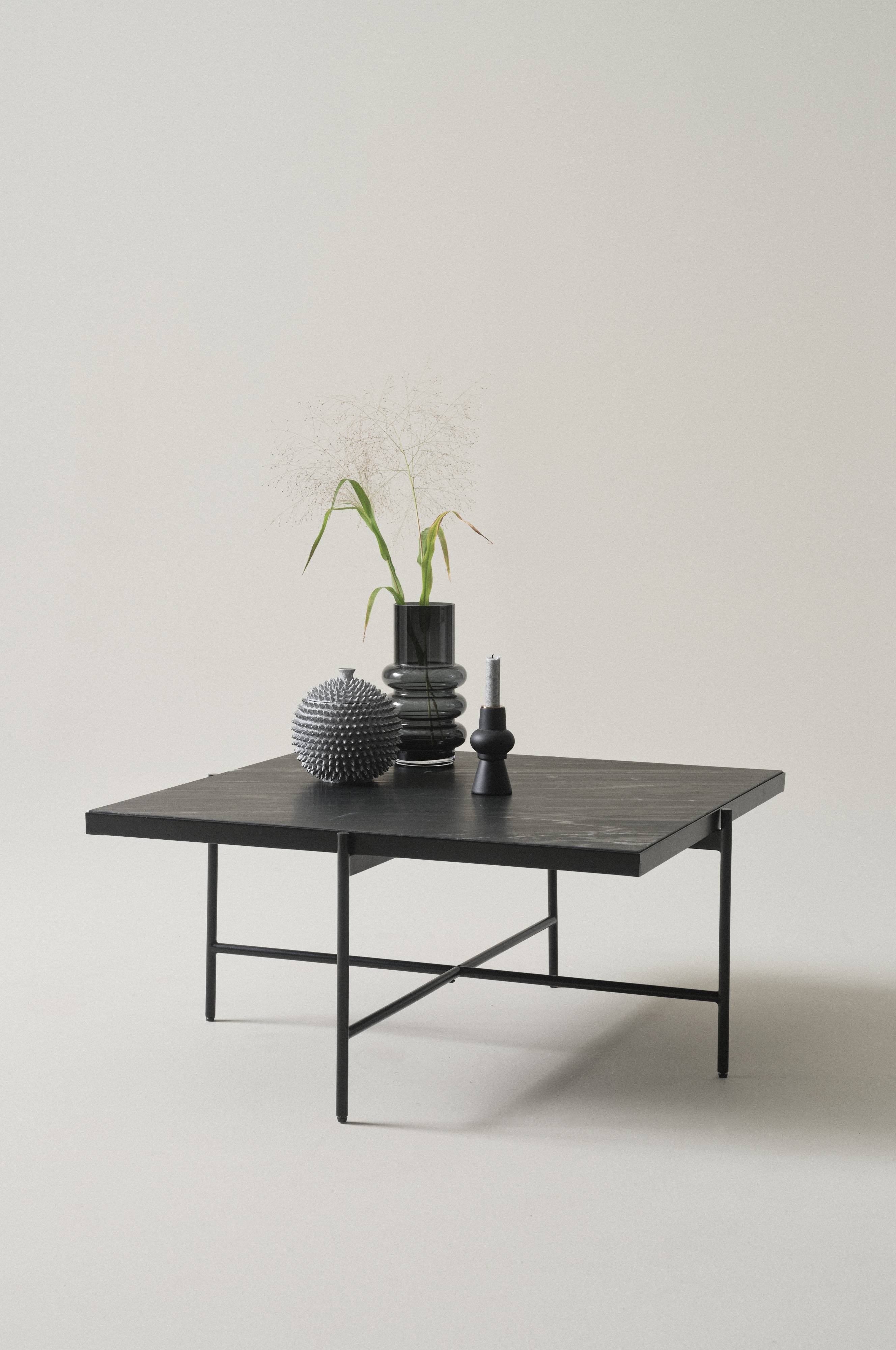 Ein quadratischer Couchtisch mit einer wunderschönen Tischplatte aus dunklem Marmor und einem Gestell aus MDF. Die dekorativen Beine sind aus Eisen. GALATINA ist ein klassischer Beistelltisch von zeitloser Eleganz. Marmor ist ein Naturmaterial, dessen Maserung von der Zusammensetzung des Gesteins abhängt, was jedes Möbelstück zum Unikat macht. Einige Montageschritte sind erforderlich. Inklusive Montageanleitung.
