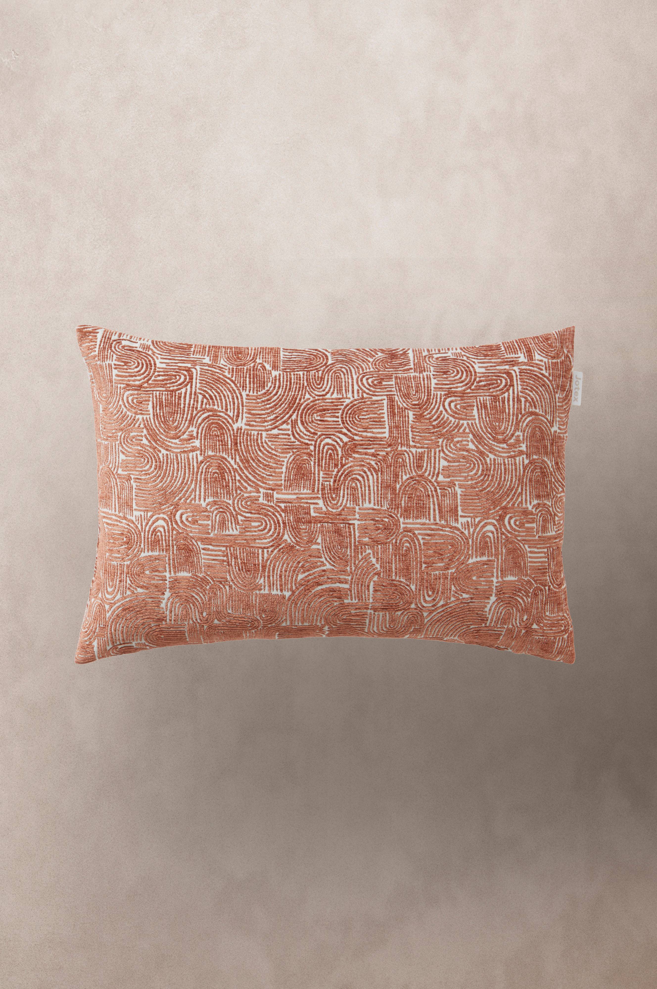 Kissenhülle mit Jacquardmuster. Das herrliche Wirrwarr aus farbigen Bögen auf weißem Webgrund passt ebenso zu einem modernen Zuhause wie zu einer Einrichtung im Retrostil. Auch die Rückseite ist gemustert. Reißverschluss unten. Grammgewicht des Stoffs 420 g/m².