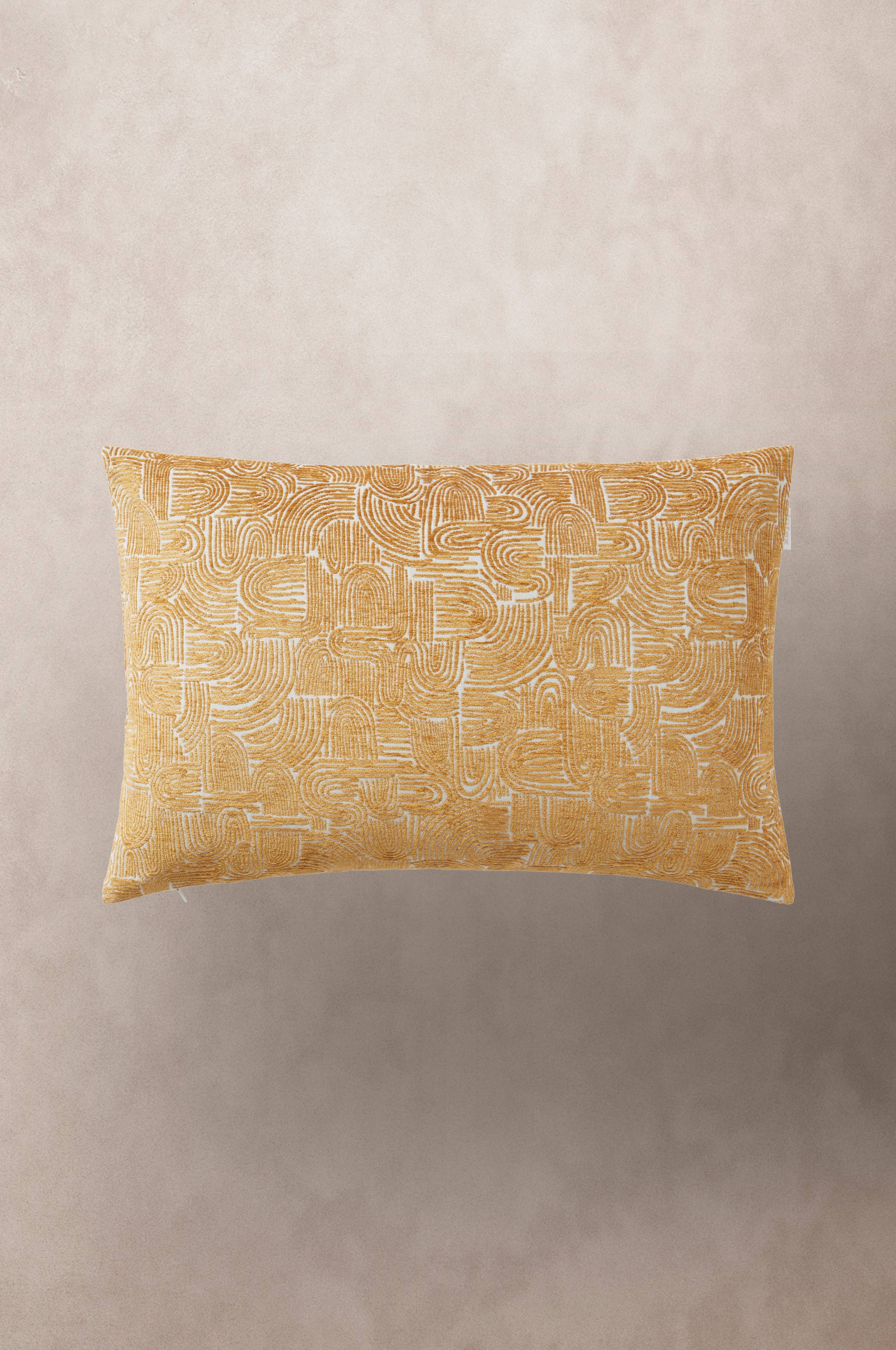 Kissenhülle mit Jacquardmuster. Das herrliche Wirrwarr aus farbigen Bögen auf weißem Webgrund passt ebenso zu einem modernen Zuhause wie zu einer Einrichtung im Retrostil. Auch die Rückseite ist gemustert. Reißverschluss unten. Grammgewicht des Stoffs 420 g/m².