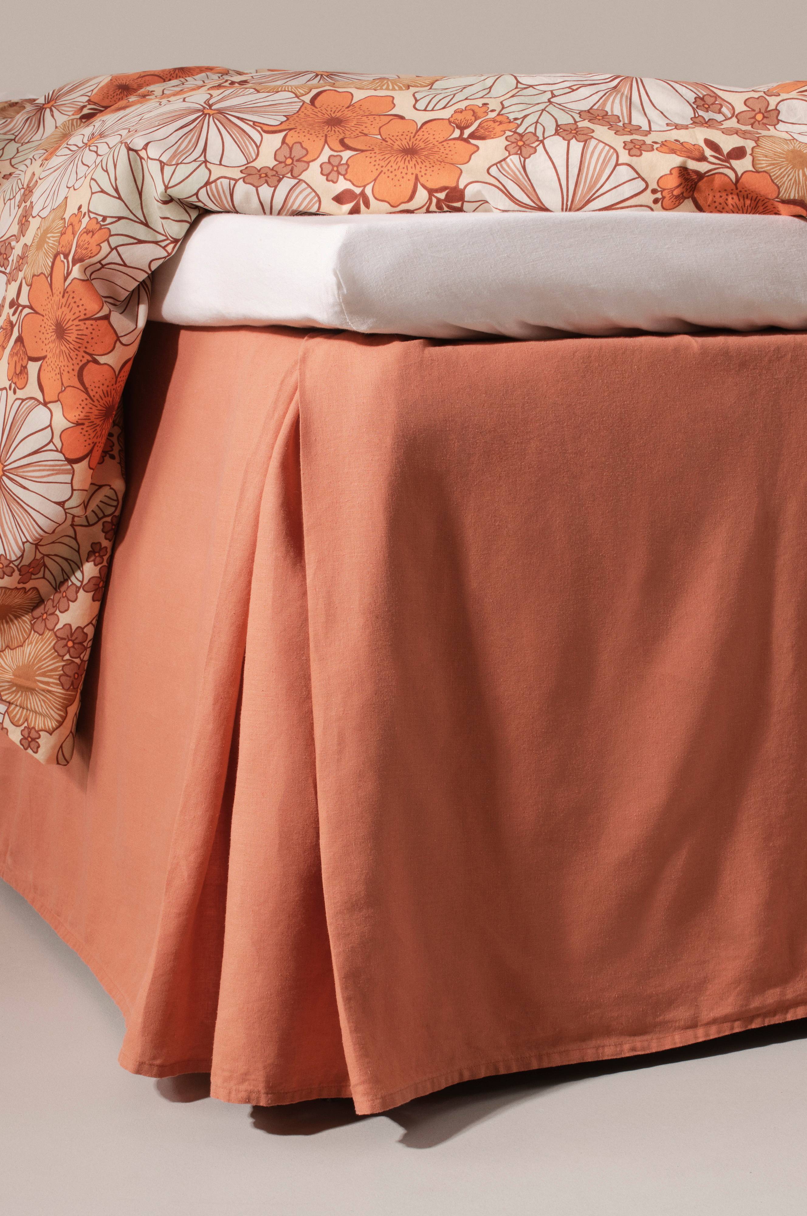 Einfarbige Tagesdecke in einem glatten Modell mit Gegenfalten in den Ecken. Die Tagesdecke hat einen Rock an drei Seiten. Das Oberteil ist aus gewaschener Baumwolle, die weich und geschmeidig ist. Der Rock ist in einer komfortablen, gewaschenen Qualität aus Hanf und Lyocell, einem Stoff mit matter Oberfläche und einem angenehmen Leinengefühl. HANNAH ist unifarben in stilvollen, leicht gedeckten Tönen.