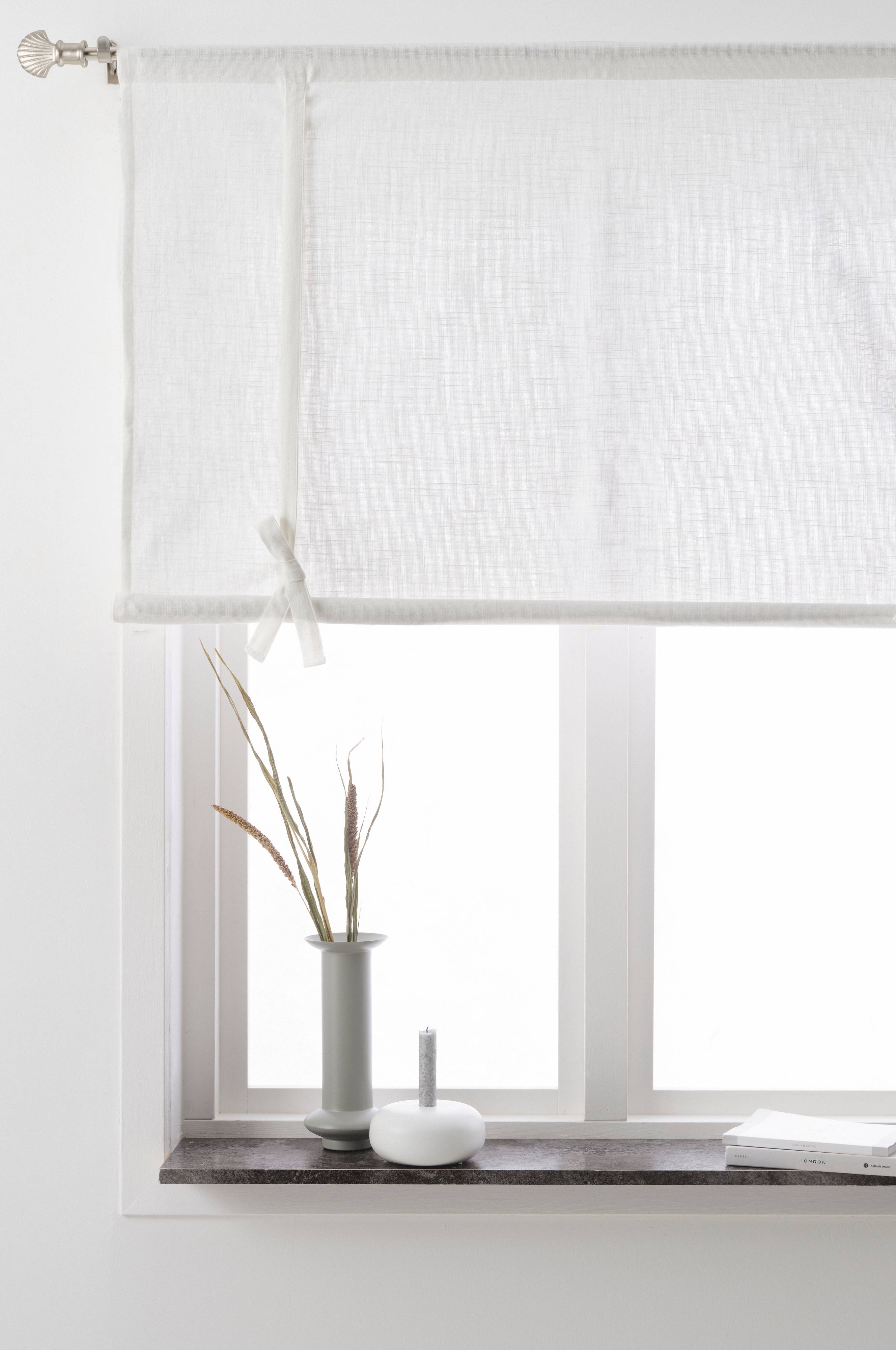 Einfarbige Rollgardine aus Baumwolle. Aufhängung an einer normalen Gardinenstange. Einfarbiges schafft Ruhe im Raum und sorgt für eine behagliche Wohnatmosphäre. Per Bindeband verstellbare Höhe.