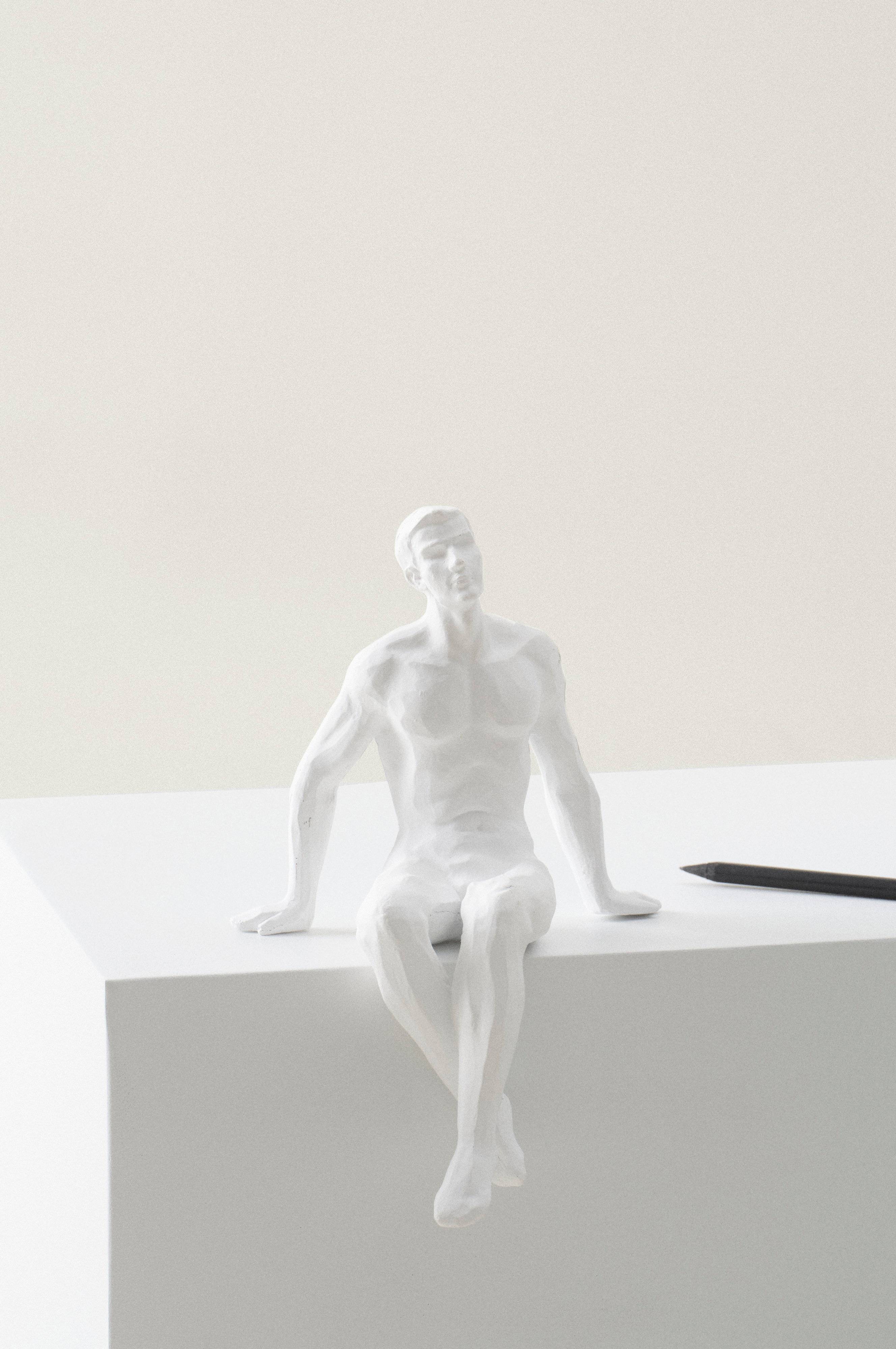 Handgefertigte Skulptur aus Polyresin. Bei der handbemalten Skulptur wurde besonders auf die von Hand gearbeiteten Details geachtet. THINKER macht sich gut auf einem Regal und kann drinnen wie draußen sitzen.