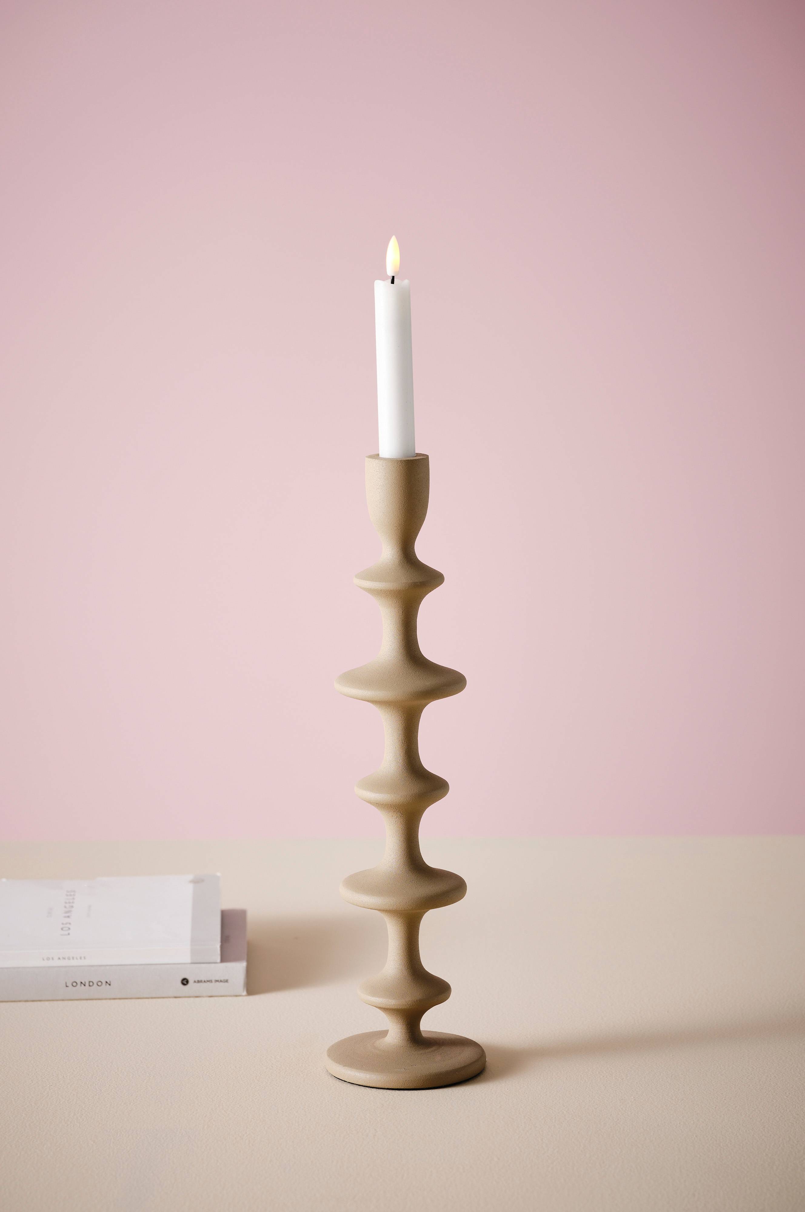 Kerzenleuchter aus strukturiertem Aluminium. Dieser wunderschöne Kerzenleuchter besticht durch seine tolle Form und ist ebenso alltags- wie festtauglich. Kerzen nicht enthalten.