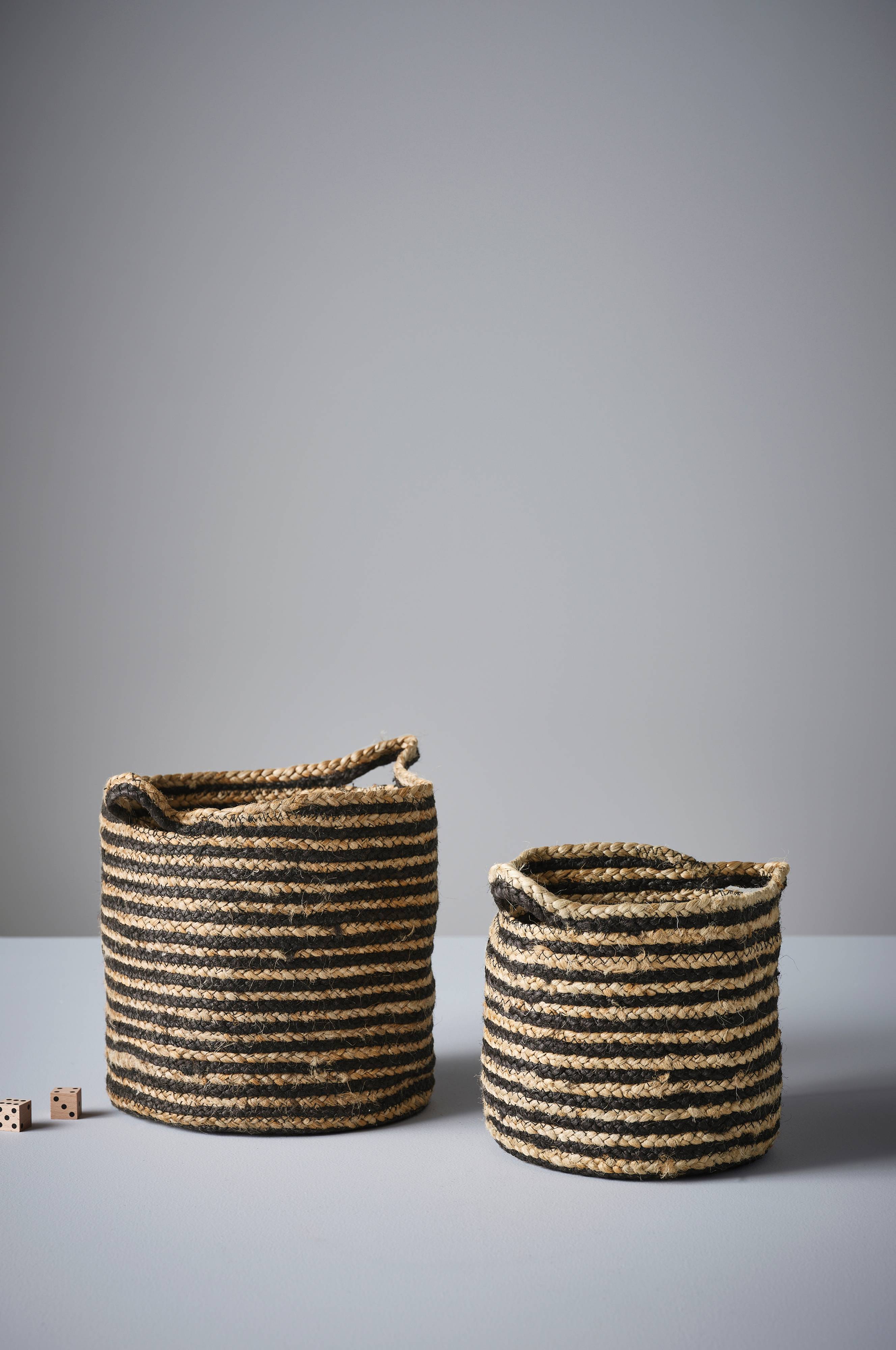Zwei dekorative Flechtkörbe aus Jute. In einem Boho-Ambiente auch schön als Übertöpfe zu verwenden.