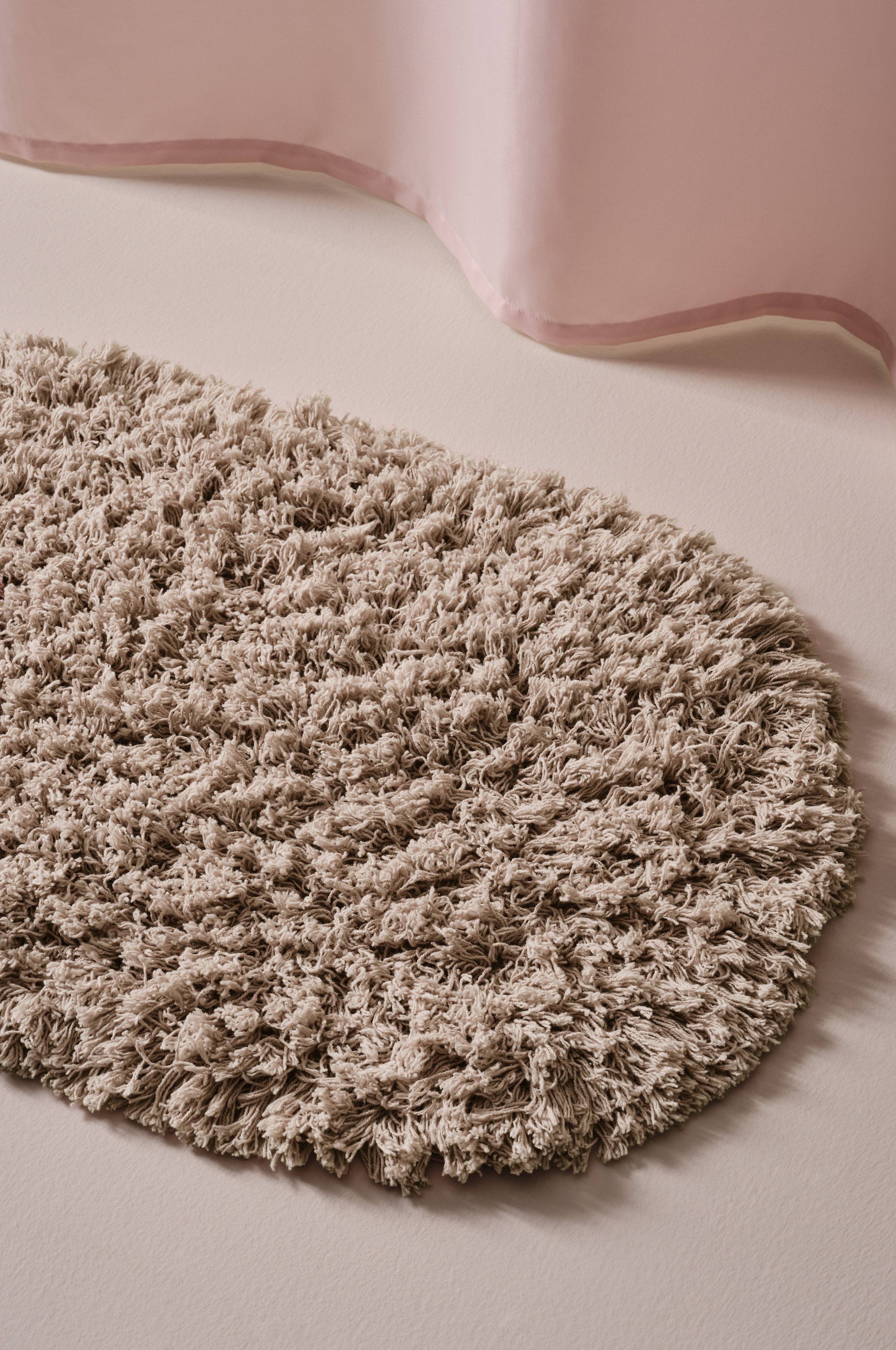 Die Badematte JANE mit ihrer einladenden Textur bringt Komfort und modernes Flair in jedes Badezimmer. Das ovale Design wertet deine Einrichtung auf und sorgt für ein kuscheliges Gefühl unter den Füßen - perfekt für die morgendliche Routine und entspannte Abende.