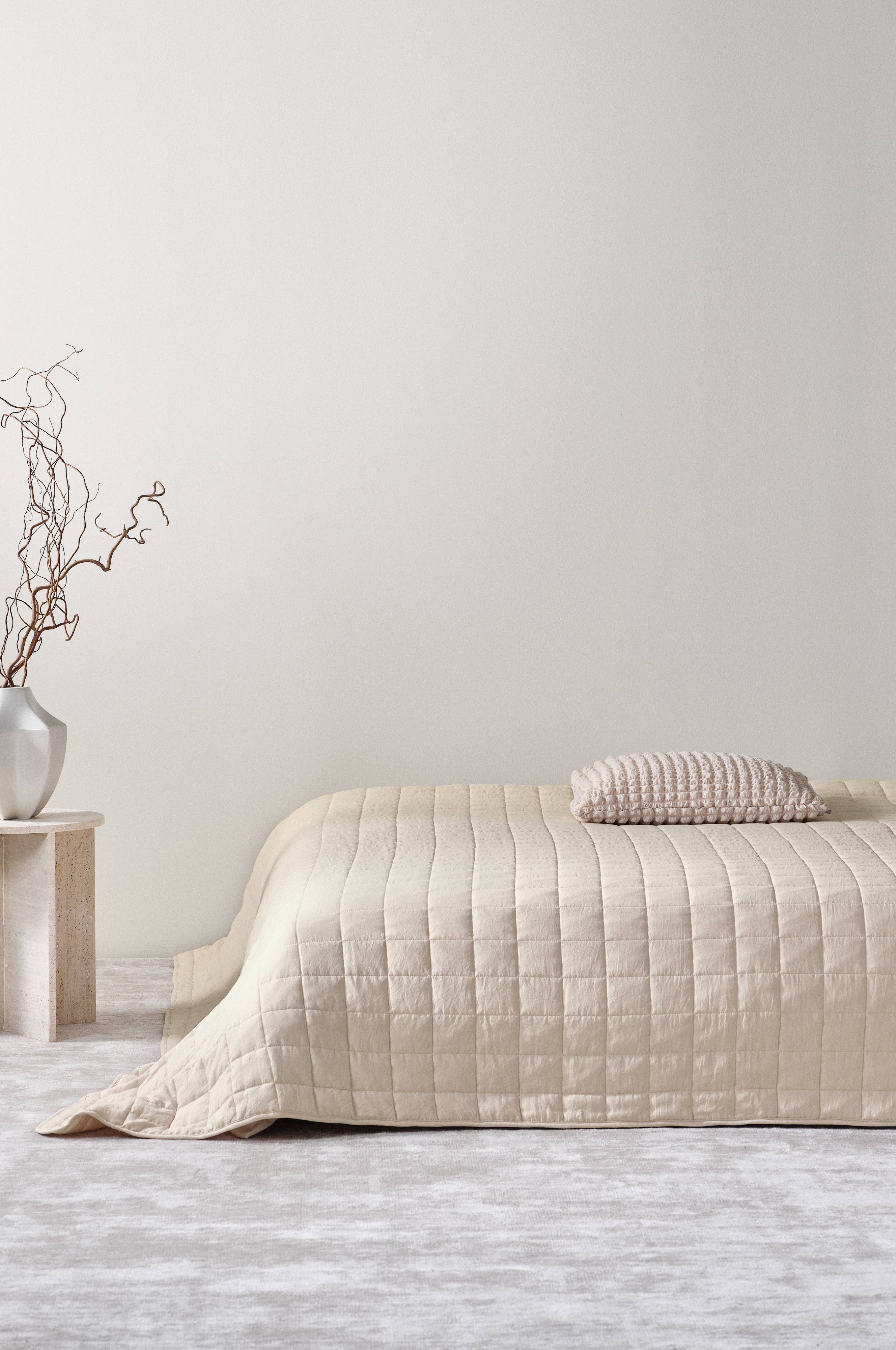 Einfarbige Tagesdecke aus einer weichen, gewaschenen Mikrofaserqualität (Polyester). Das dezente Karomuster entsteht durch die Steppnähte, die gleichzeitig die Polyesterfüllung fixieren. Die Decke hat abgerundete Ecken und eine umlaufende Steppnaht. JARA ist weder schwer noch sperrig, sondern ganz leicht in der Handhabung.