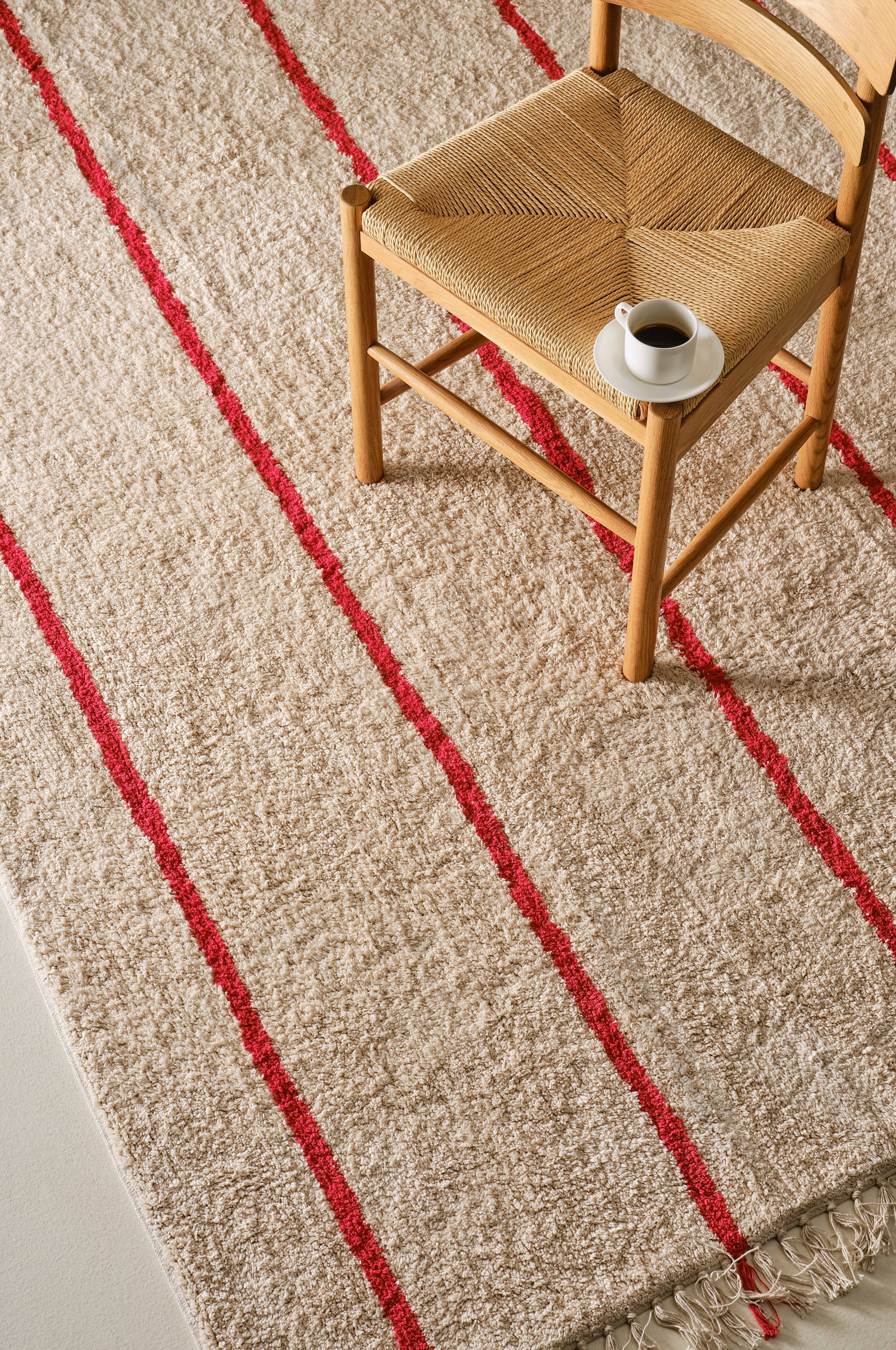 Getufteter Baumwollteppich mit herrlich weichem Flor. Das garngefärbte Streifendessin verleiht diesem Teppich die frische und zugleich klassische Optik, dank der er sich so vielseitig platzieren lässt. Fransenlänge 10 cm. Florhöhe 1 cm. Dicke 1,1 cm. 1400 g/m².