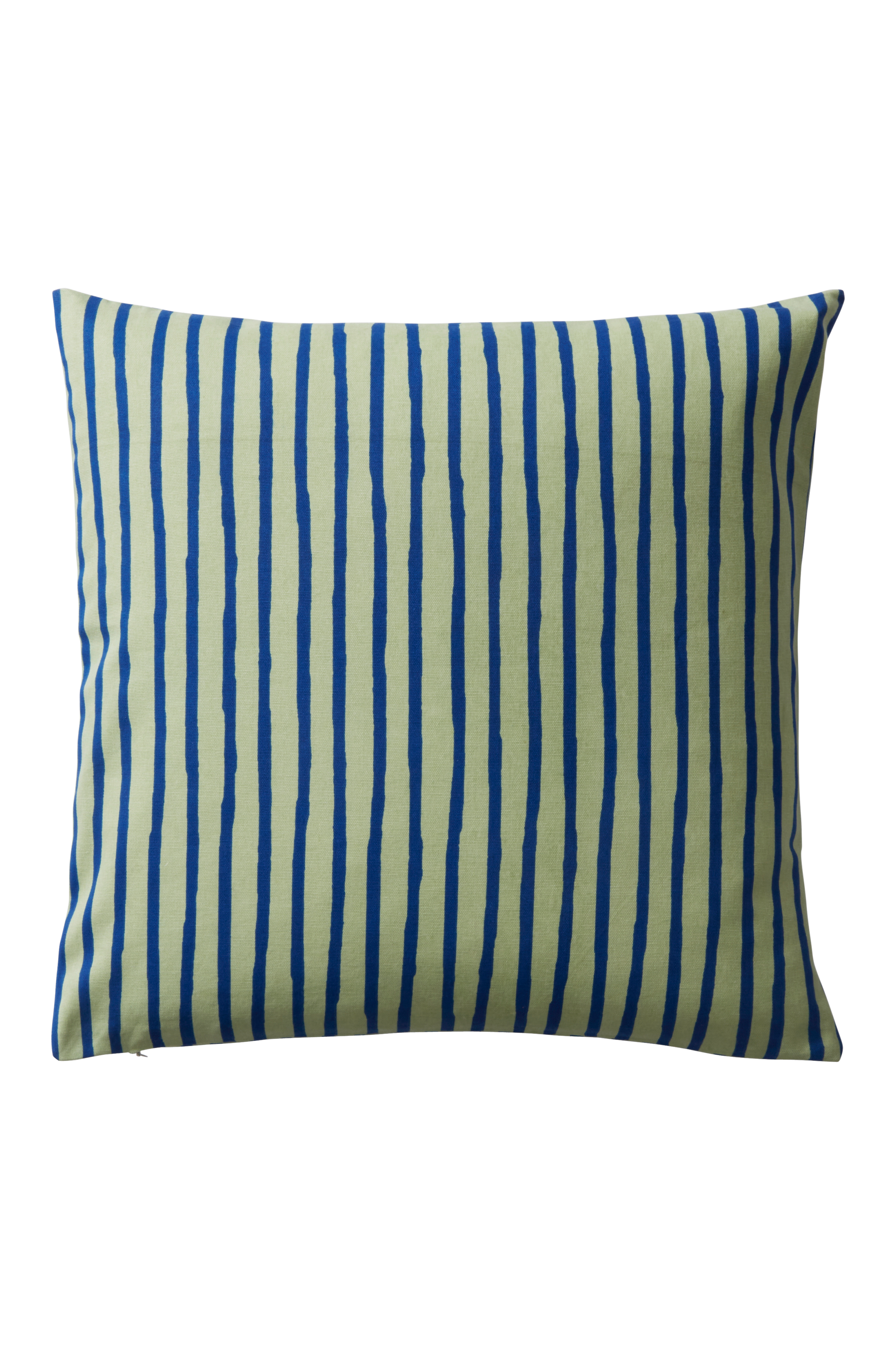 1er-Pack Kissenhülle mit einem leicht unregelmäßigen Streifendruck auf hellem Untergrund. Die Rückseite ist ebenfalls gemustert. Reißverschluss unten.