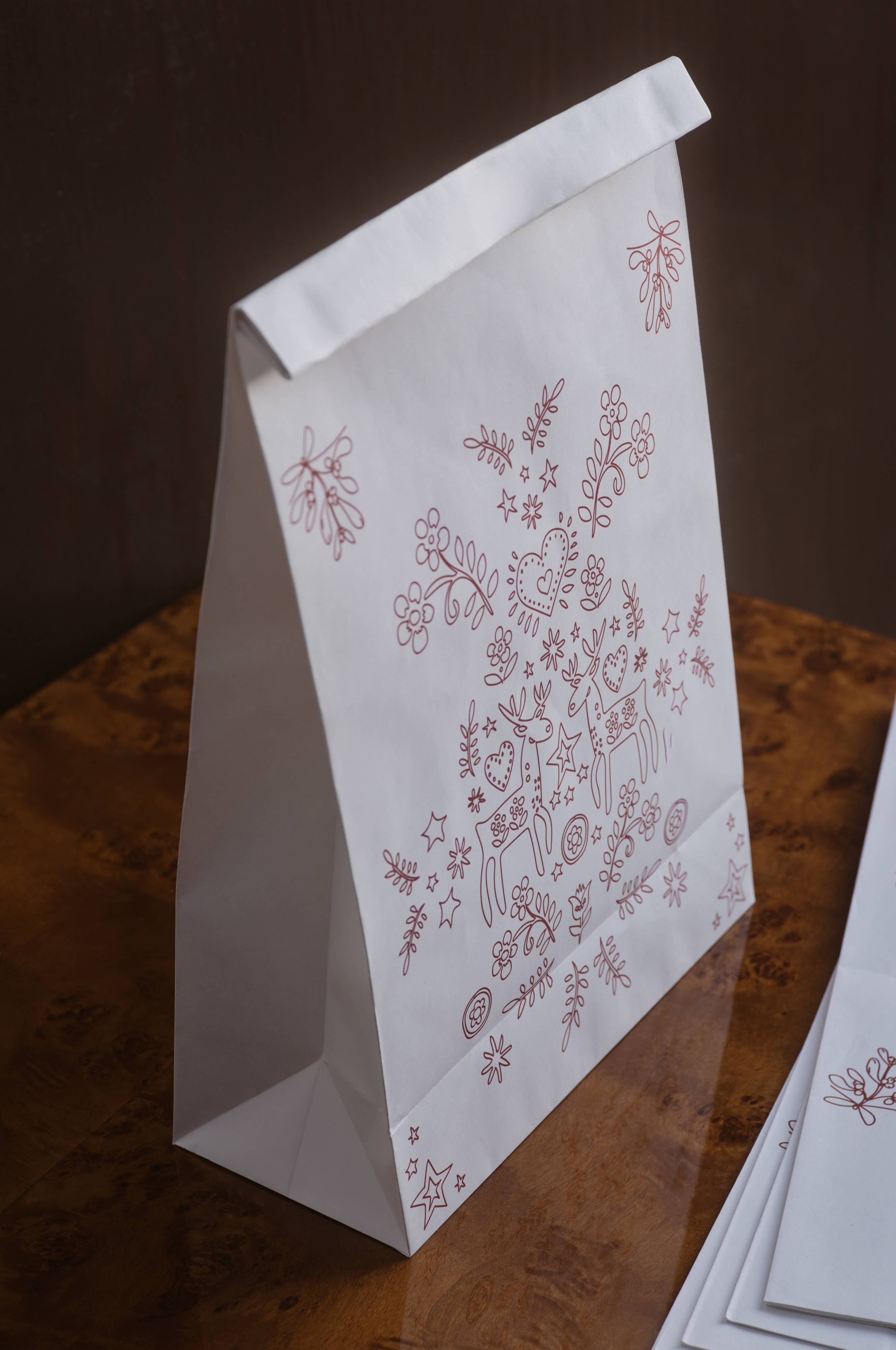Das JOLLY DEER Geschenktaschen-Set besteht aus fünf eleganten weißen Papptaschen mit rotem Aufdruck. Perfekt für festliche Anlässe geeignet, kannst du den Deckel einfach umklappen und sicher und stilvoll verschenken.