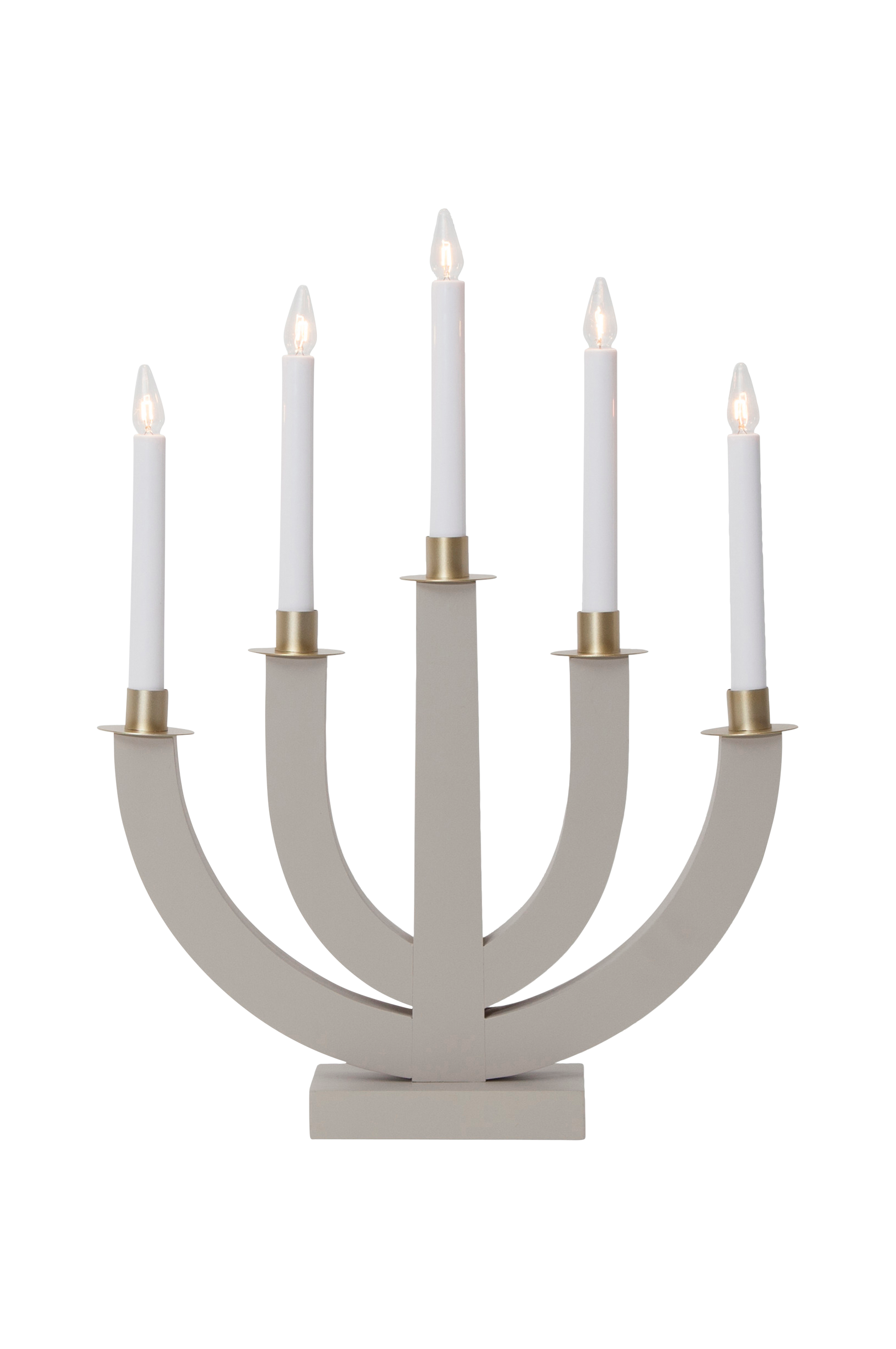 Dieser leicht zu platzierende Holzleuchter mit 5 Leuchtmitteln und goldfarbener Verzierung verbreitet eine herrliche Weihnachtsatmosphäre. Ideal für Fenstersims, Regal oder Anrichte. E10-Sockel, einschließlich Leuchtmittel. Weißes Anschlusskabel, 180 cm. Höhe 47 cm, Breite/Länge 37 cm und Tiefe 8 cm.