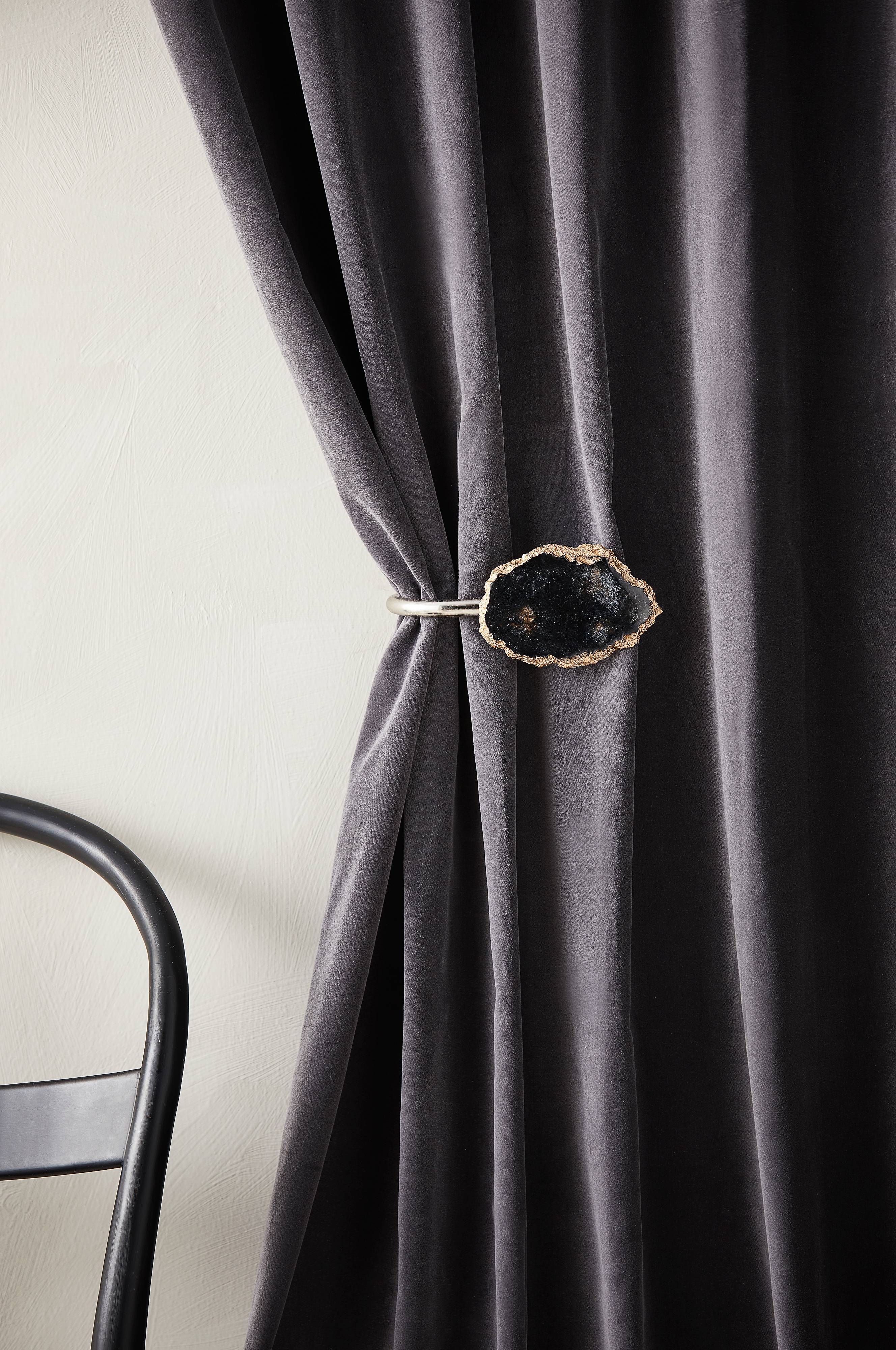2er-Pack Raffhalter aus Metall und MDF mit Steinimitat und goldfarbenen Details. Ein Paar originelle Raffhalter, die jede Vorhangdekoration vollenden.