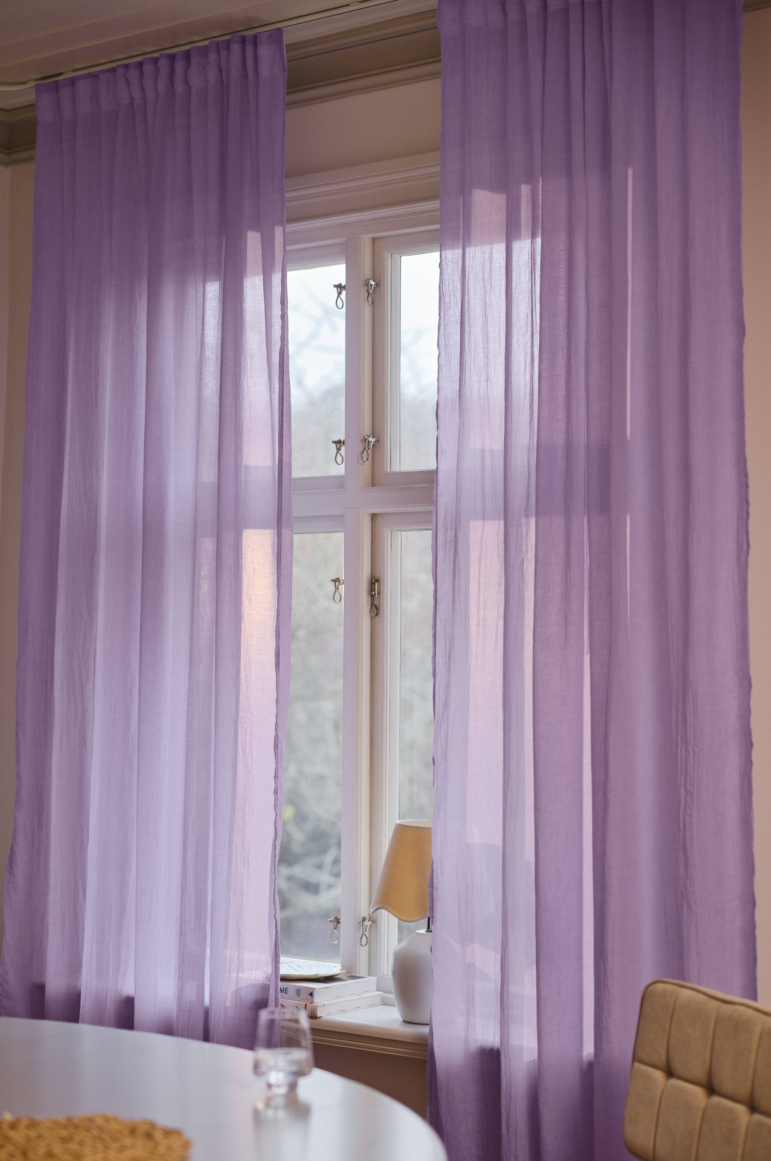 Ich mag diese Vorhänge sehr. Die Sonne scheint durch, aber von draußen kann niemand reinschauen.